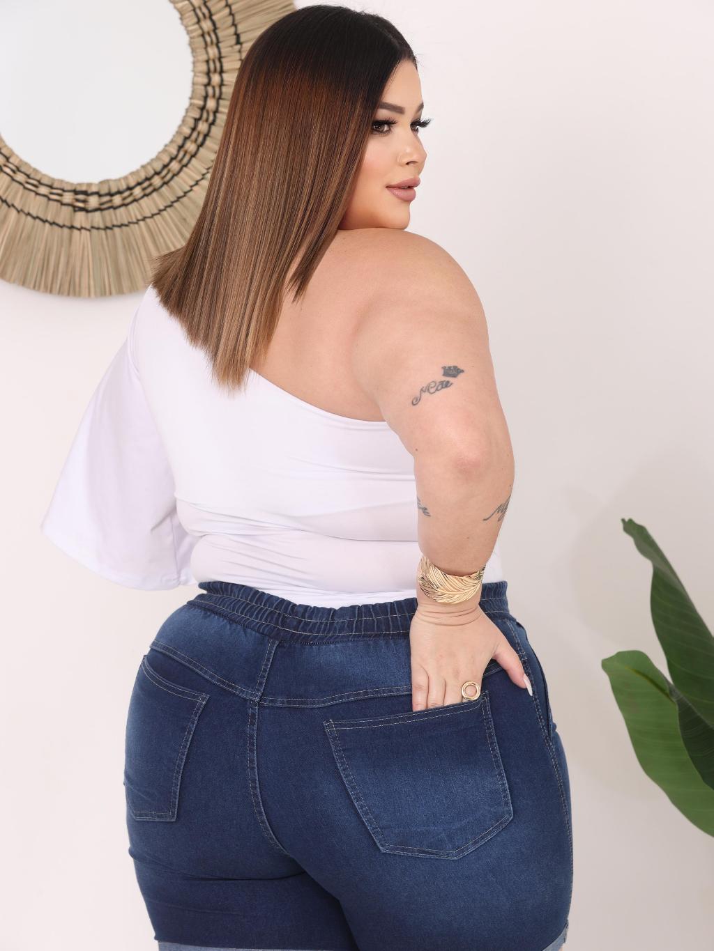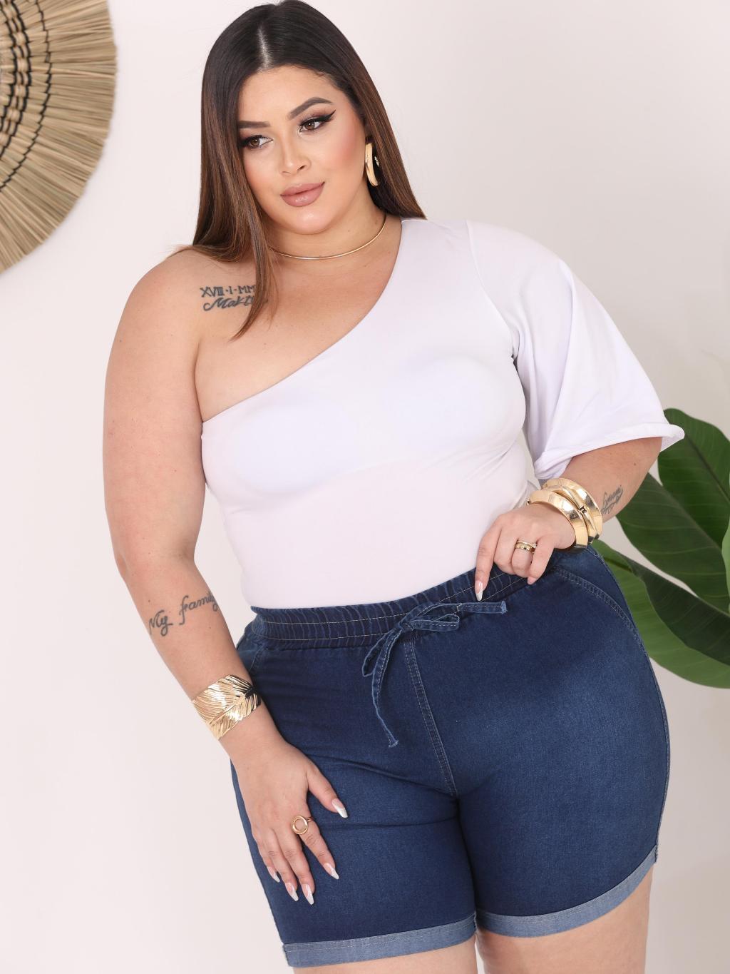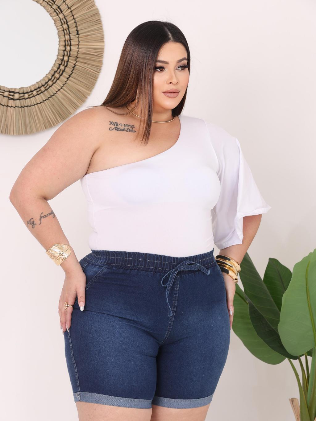 Bermuda Short Jeans Feminino Com Elastico e Elastano Com Bolsos E Reguladores