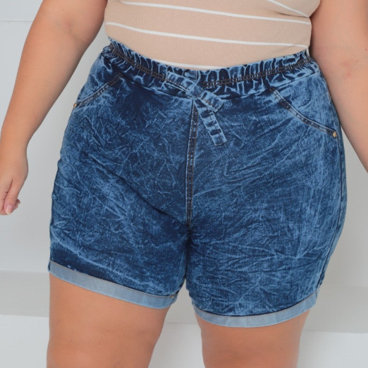 Short Jogger Feminino Plus Size Destroyed com Bolsos Traseiros e Elastano