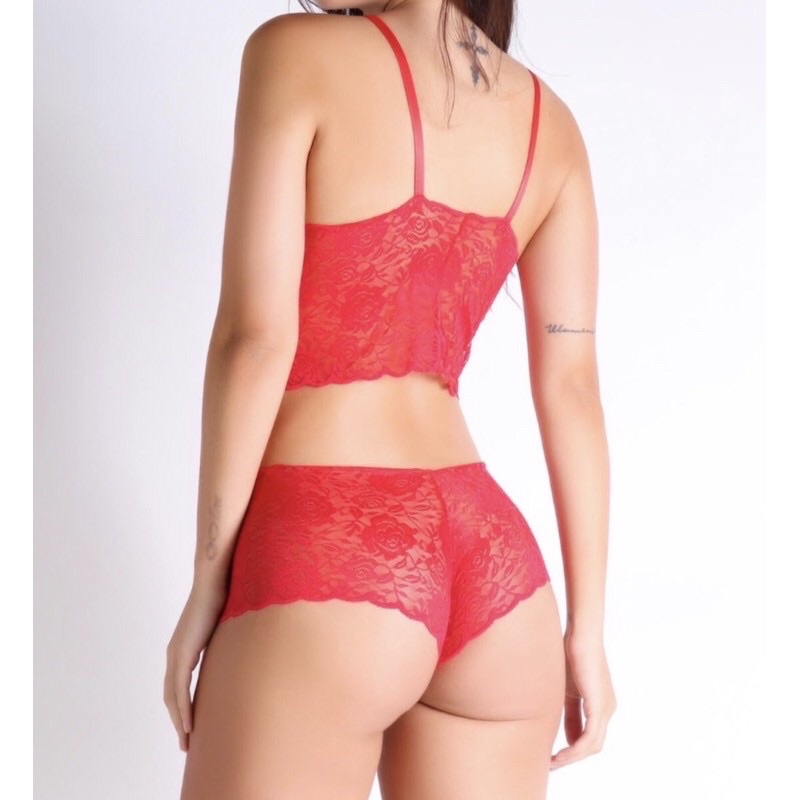 Conjunto De Renda Espera Marido Estilo Íntimo Caleçon Calcinha e Cropped