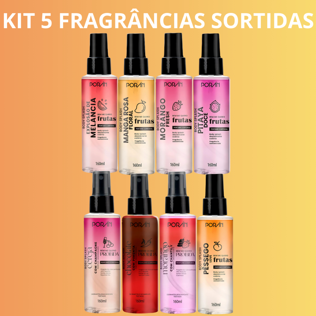 KIT 5 Body Splash Desodorante Colônia Spray Corporal Porán Sortidos 160mL