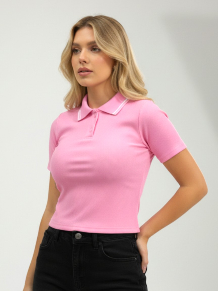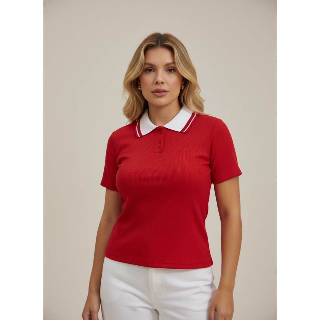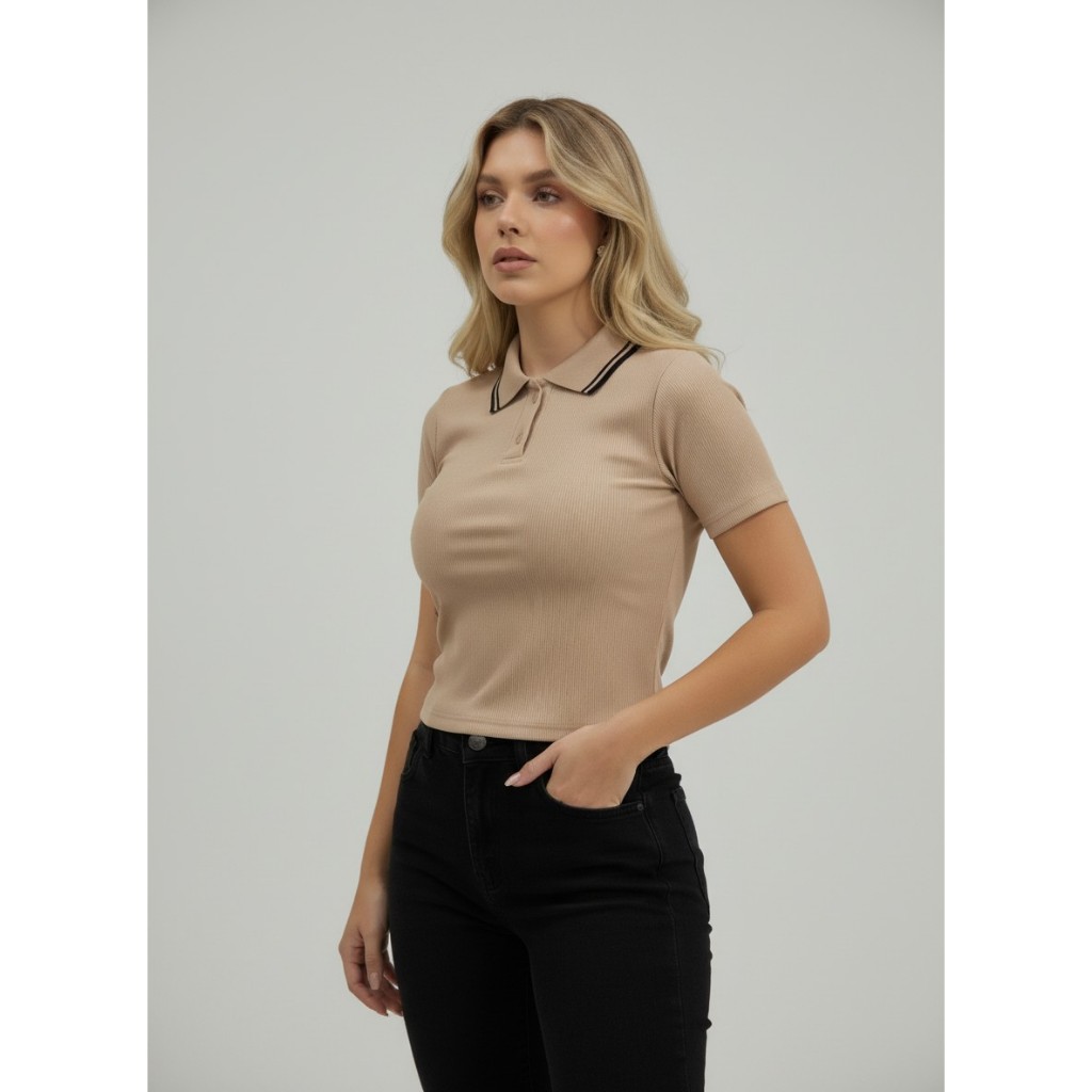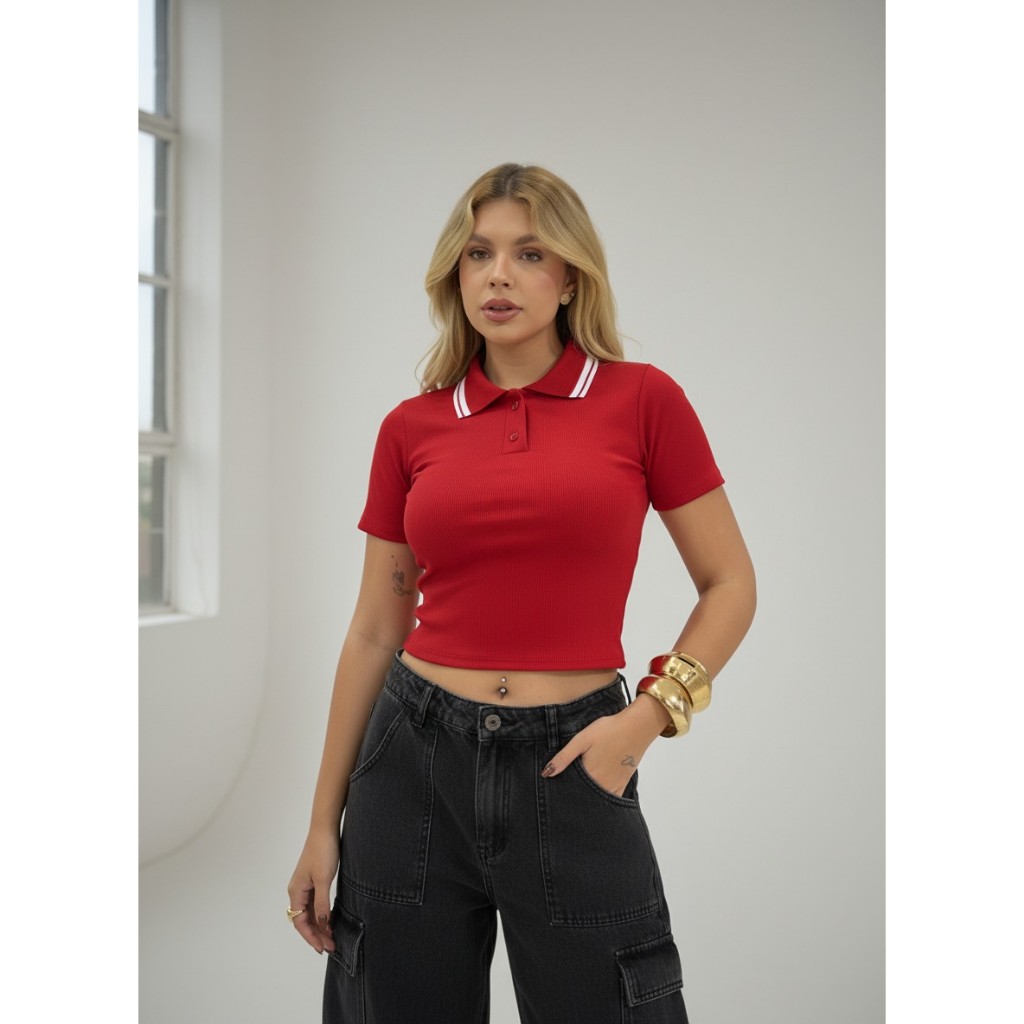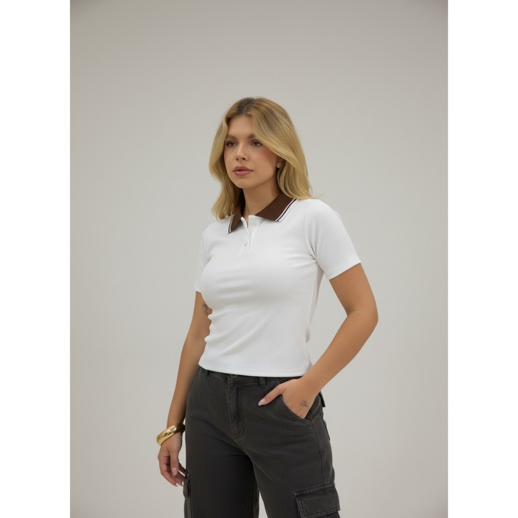 blusa feminina estilosa camiseta polo feminina gola manga curta luxo elegante Baby look blusa cropped gola polo ribana p