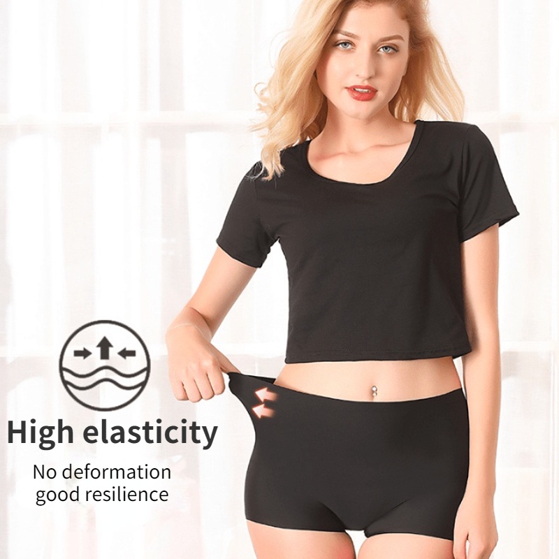 Mais Tamanho Calça Boxeadora De Seda De Cintura Média Sem Costura Segurança Feminina De Perneiras