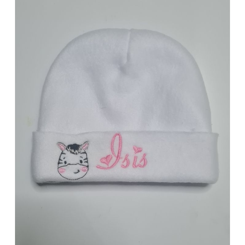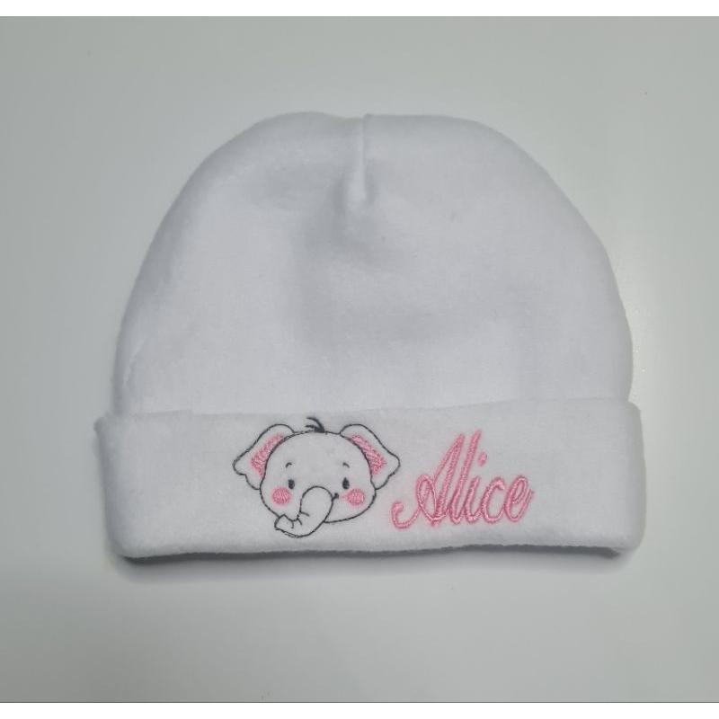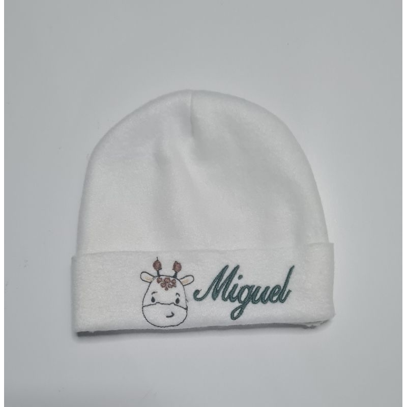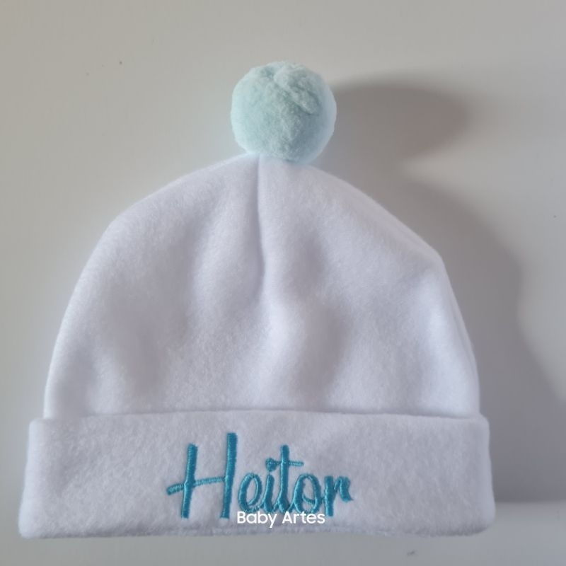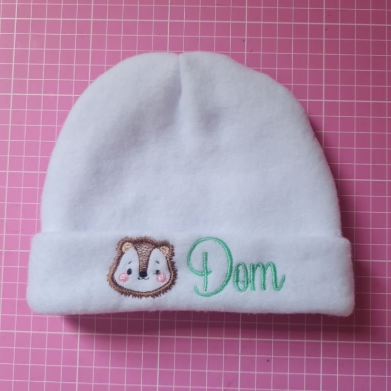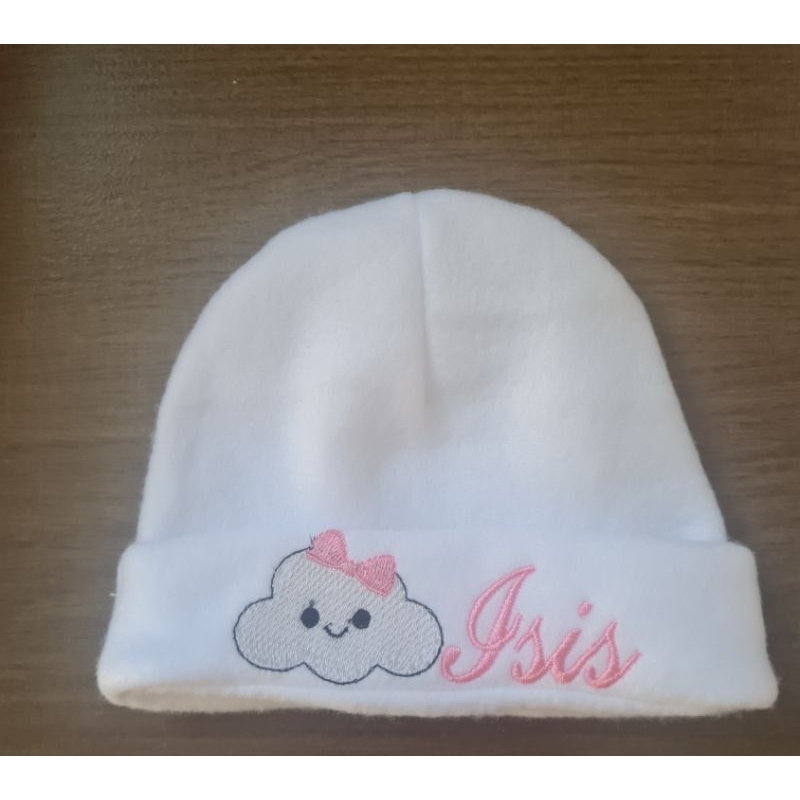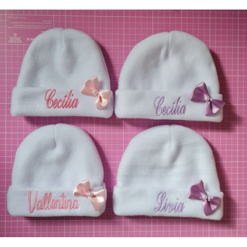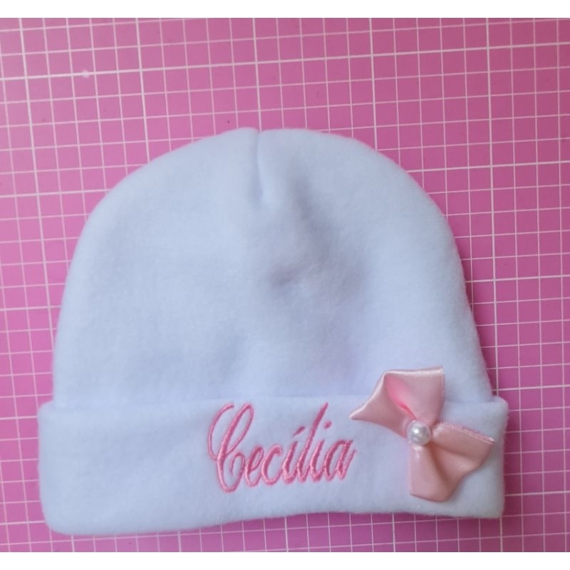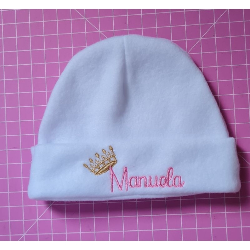 Touca recém nascido com nome bordado.