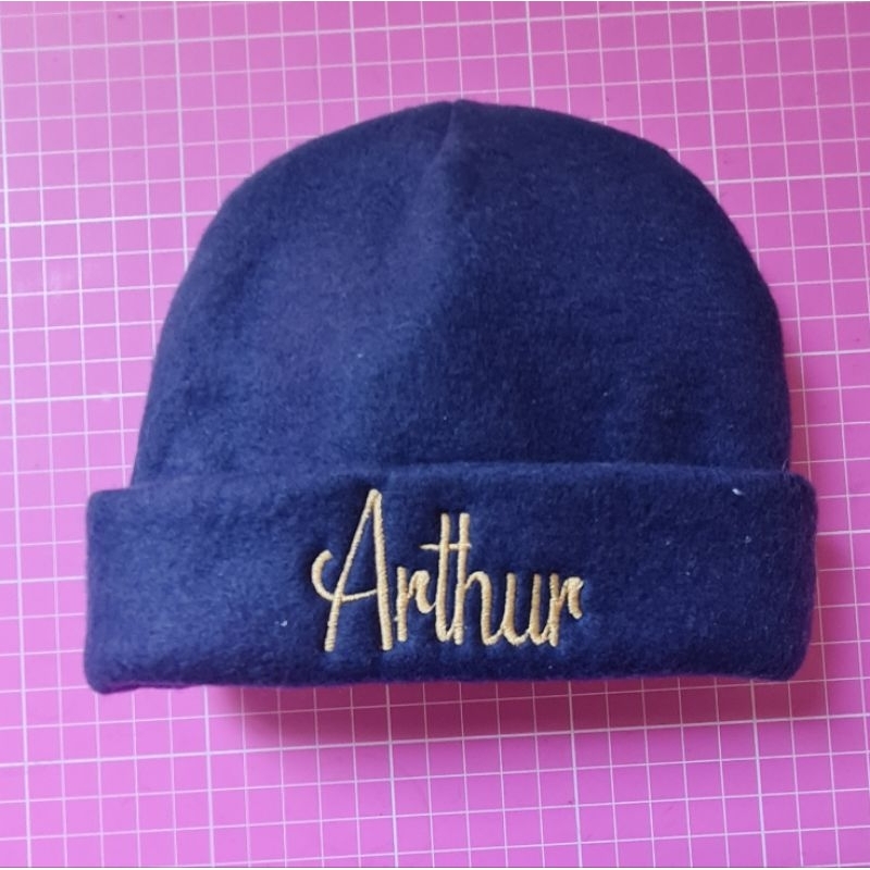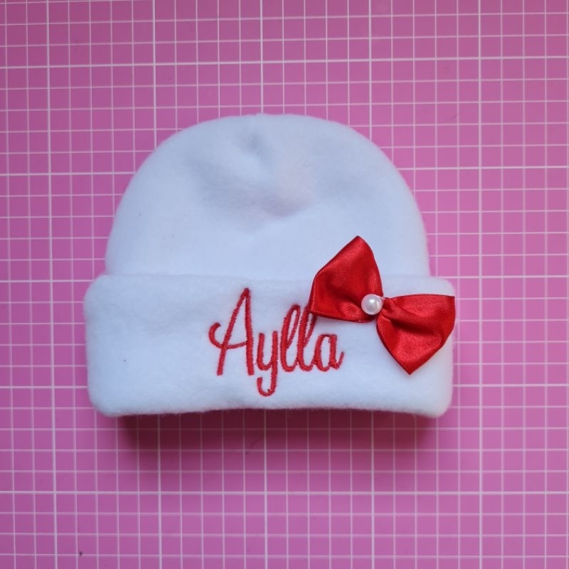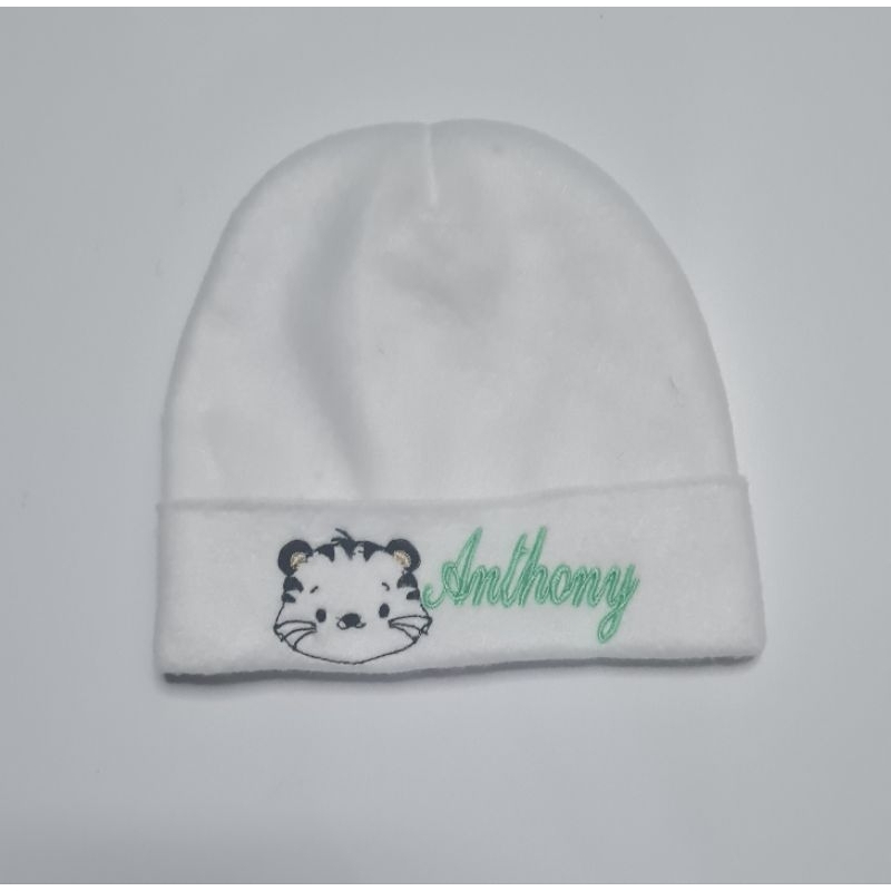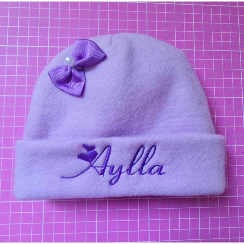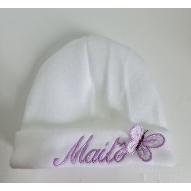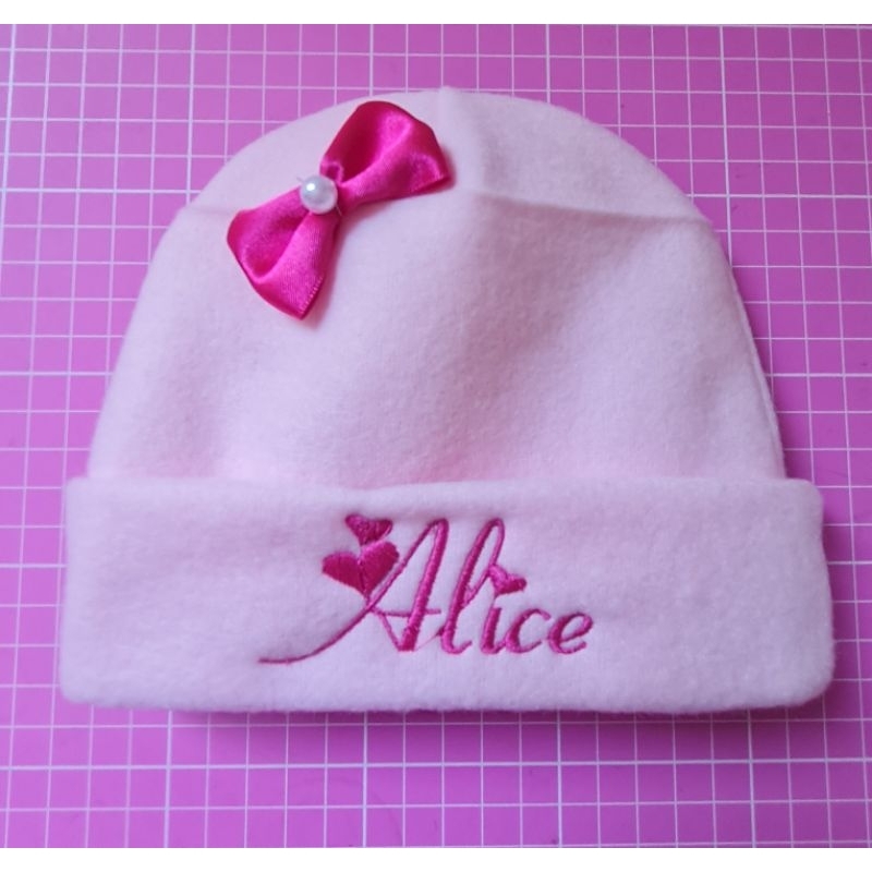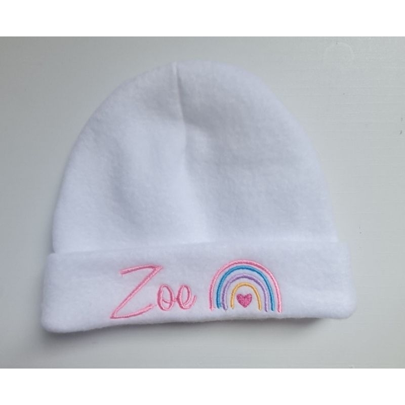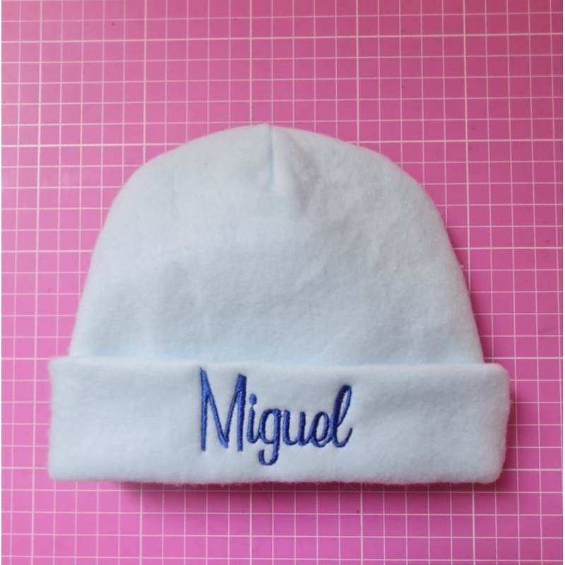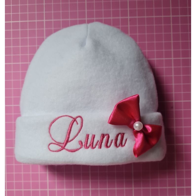 Touca recém nascido com nome bordado.