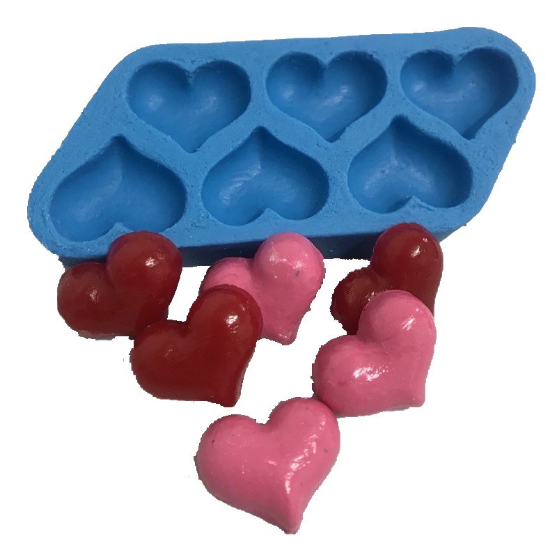 Molde De Silicone - 6 Corações Sabonete Vela Gesso Biscuit
