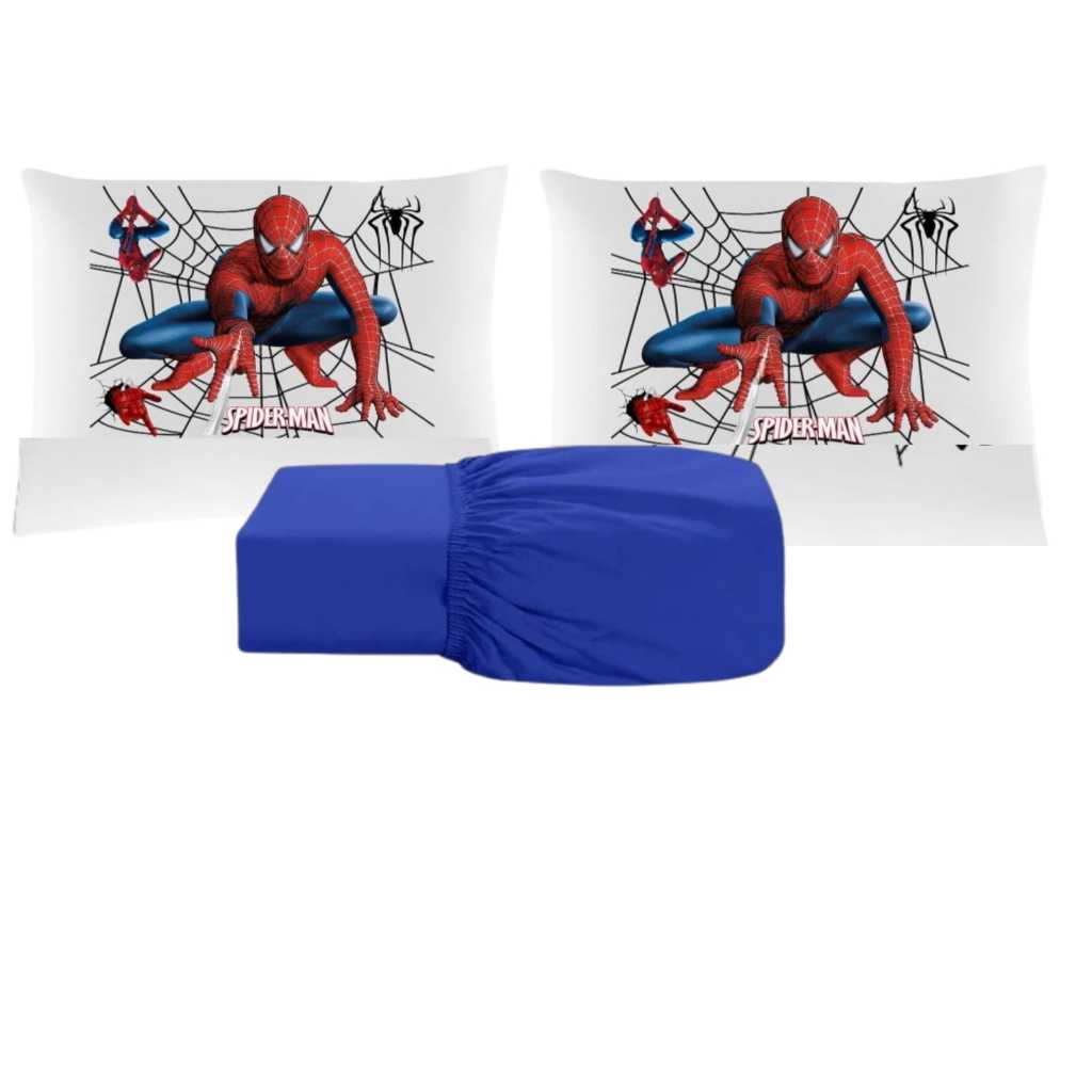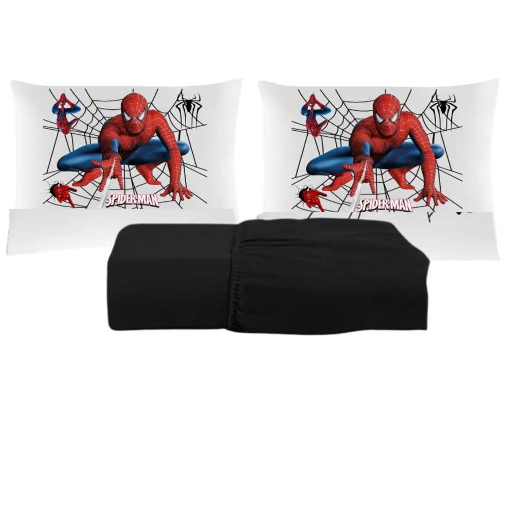 JOGO DE LENÇOL CASAL HOMEM ARANHA DE LUXO 3 PEÇAS FRONHA LENÇOL DE ELASTICO SPIDER MEN