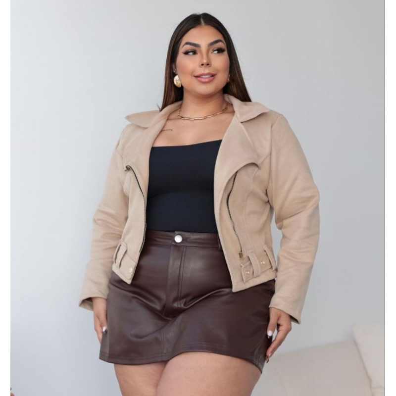 Jaqueta Blusa de Frio Suede Feminina Plus Size Moda Outono Inverno