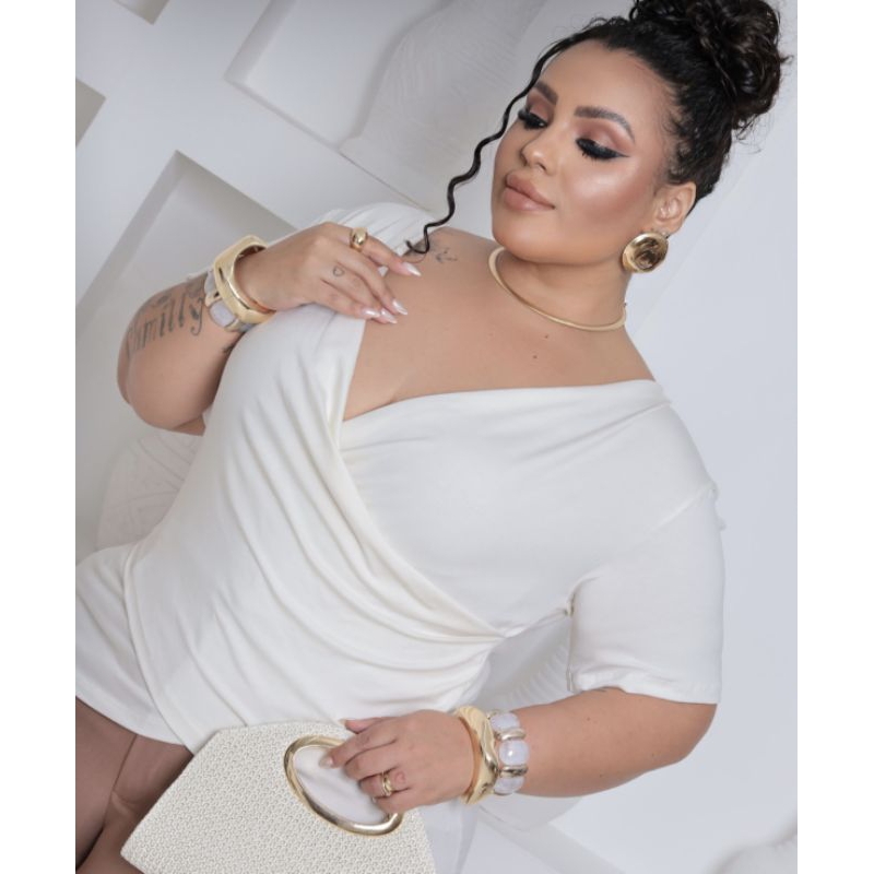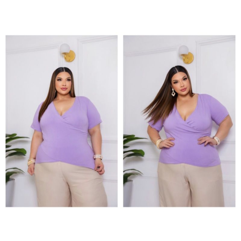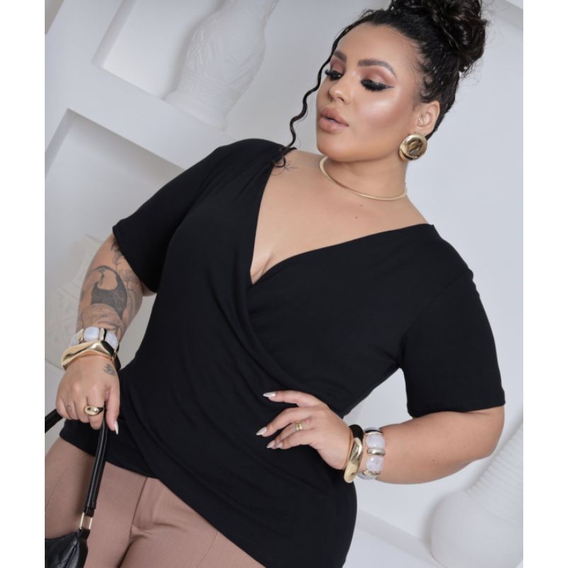 Blusa Feminina Plus Size Manga Curta Transpassada Viscolaycra
