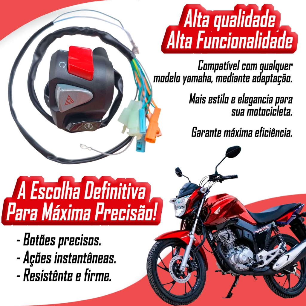Punho Interruptor de Partida Modelo Cb500 Pisca Alerta Cg Fan Start Titan 150 160 Xre 300 Cb300 2014 2015 2016 17 a 2023