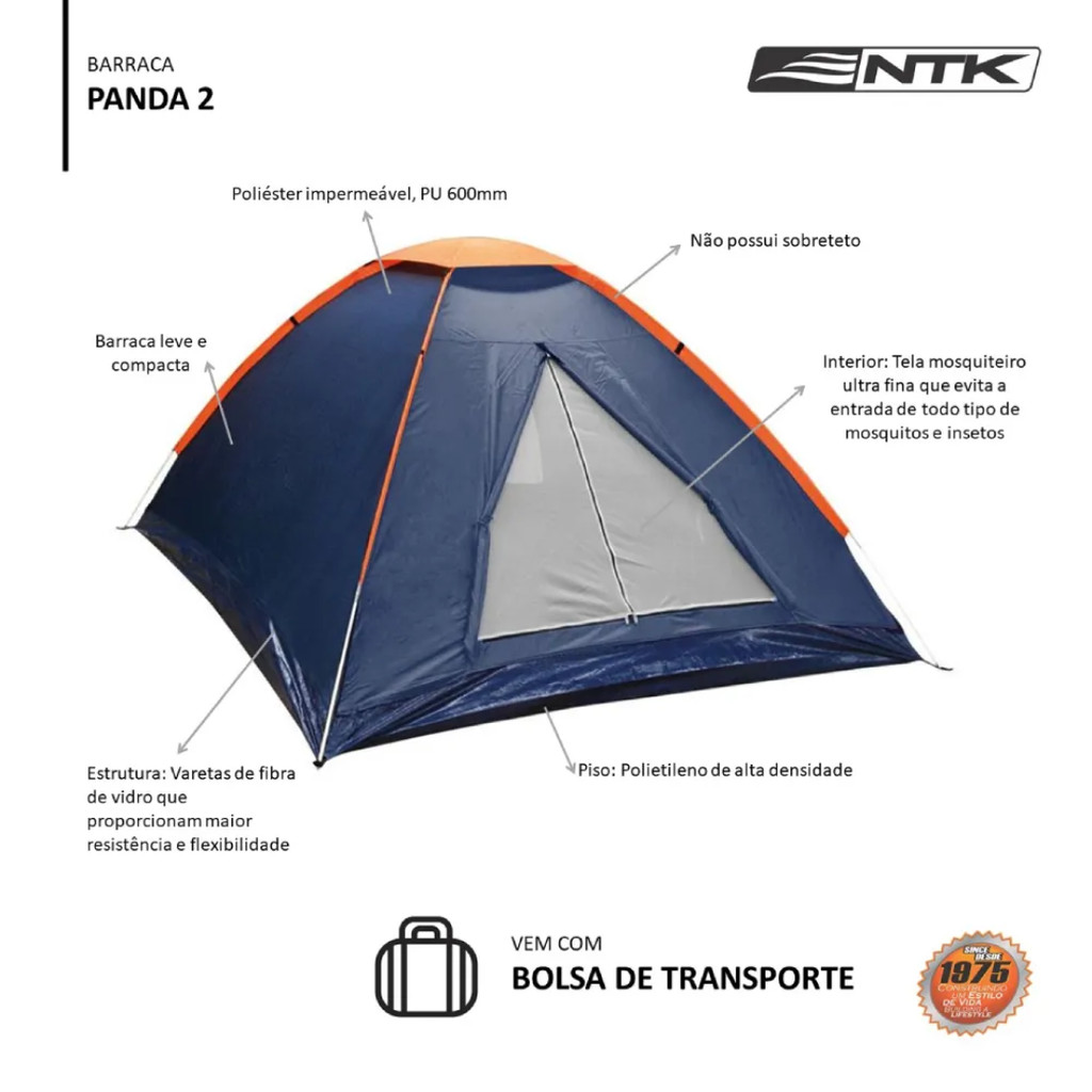 Barraca Camping 2 Pessoas Panda Nautika 600mm Piso Termico Acampamento Casal