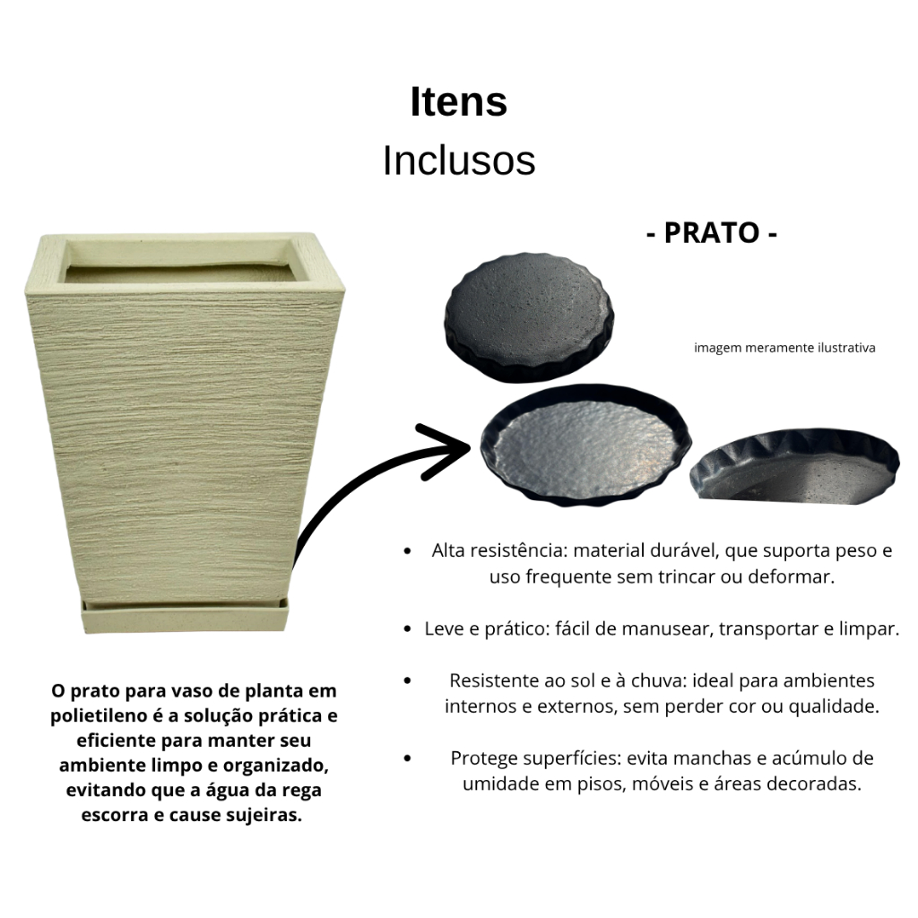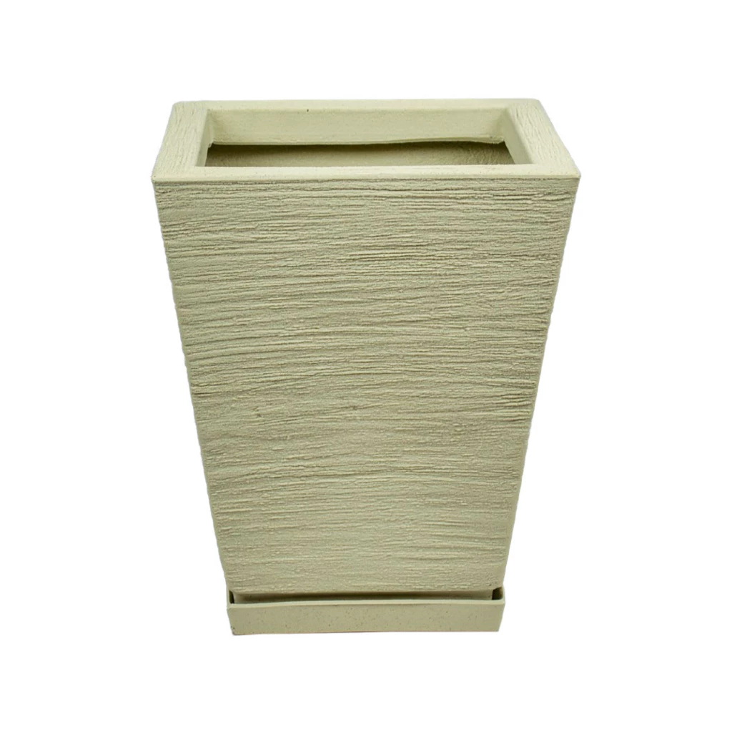 Vaso para Planta Escovado Quadrado com Prato Resistente Decorativo Em Polietileno