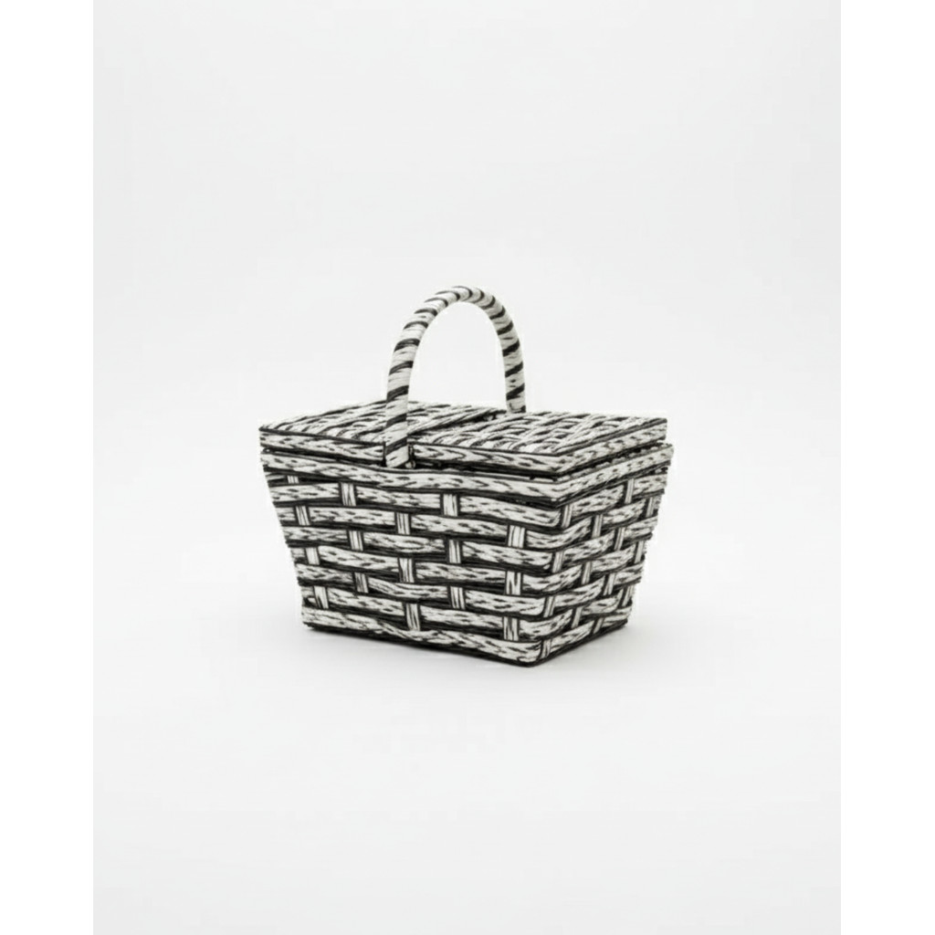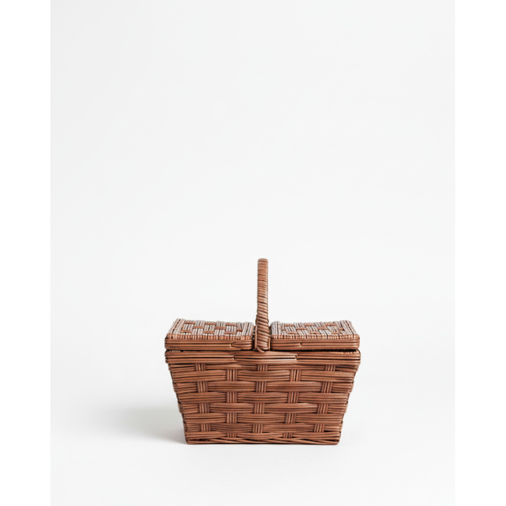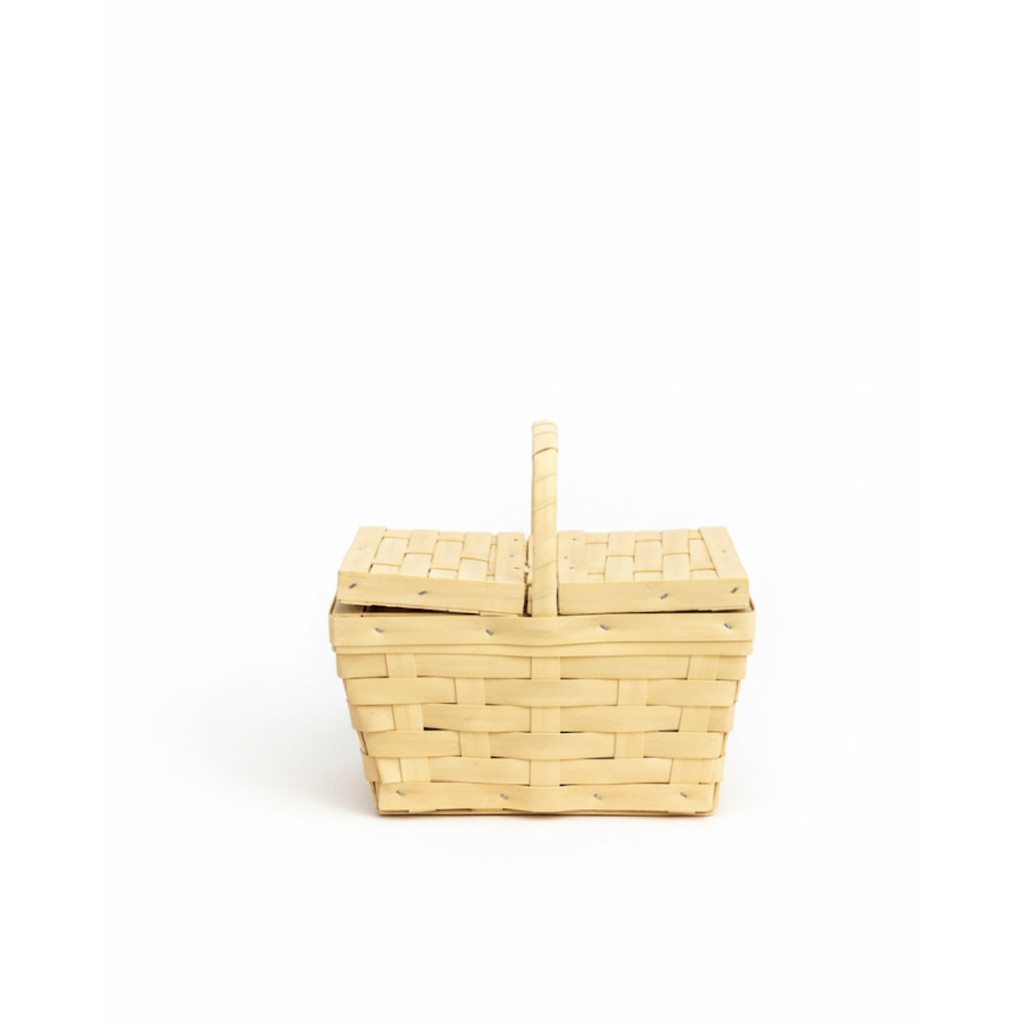 Cesta Piquenique com Alça e Tampa Mini Cesta Decorativa Estilo Vime