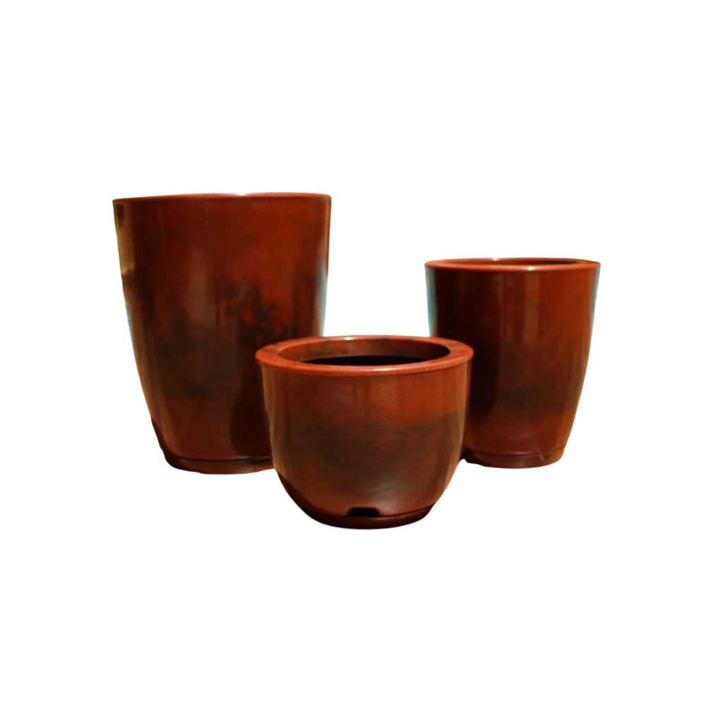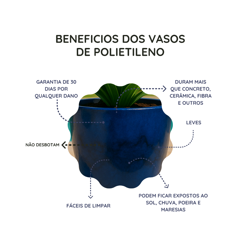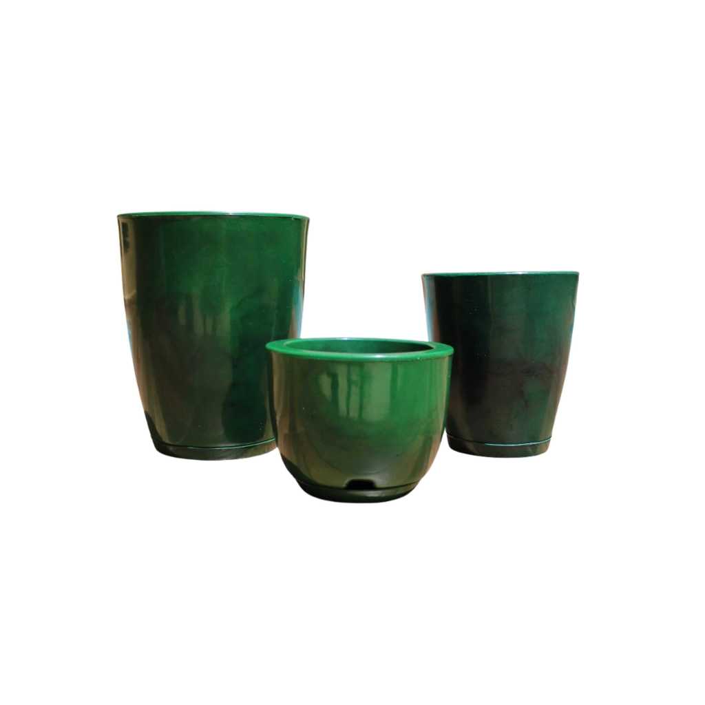 Kit 3 Vasos Para Plantas Polietileno Decorativo Liso Polido Cone Bojo N1 N2 N3