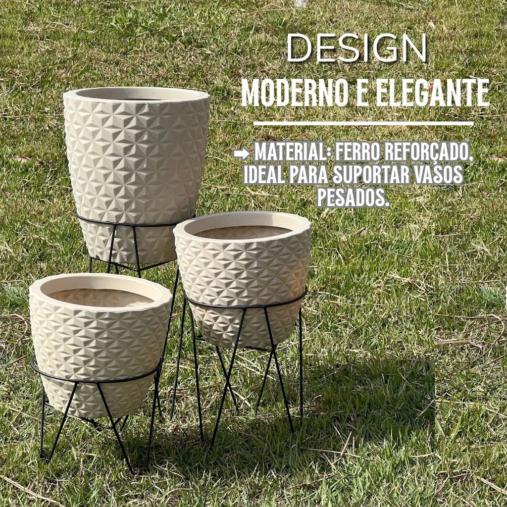 Kit Suporte Para Vasos de Plantas Decoração Jardim Casa Tripés 3 Tamanhos Alturas Diferentes Suporte Ferro