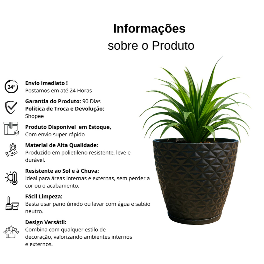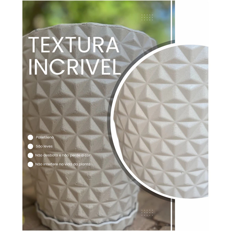 Kit 2 Vasos Polietileno Para Plantas Jardim Sala Luxo Diamante Bojo P Com Prato
