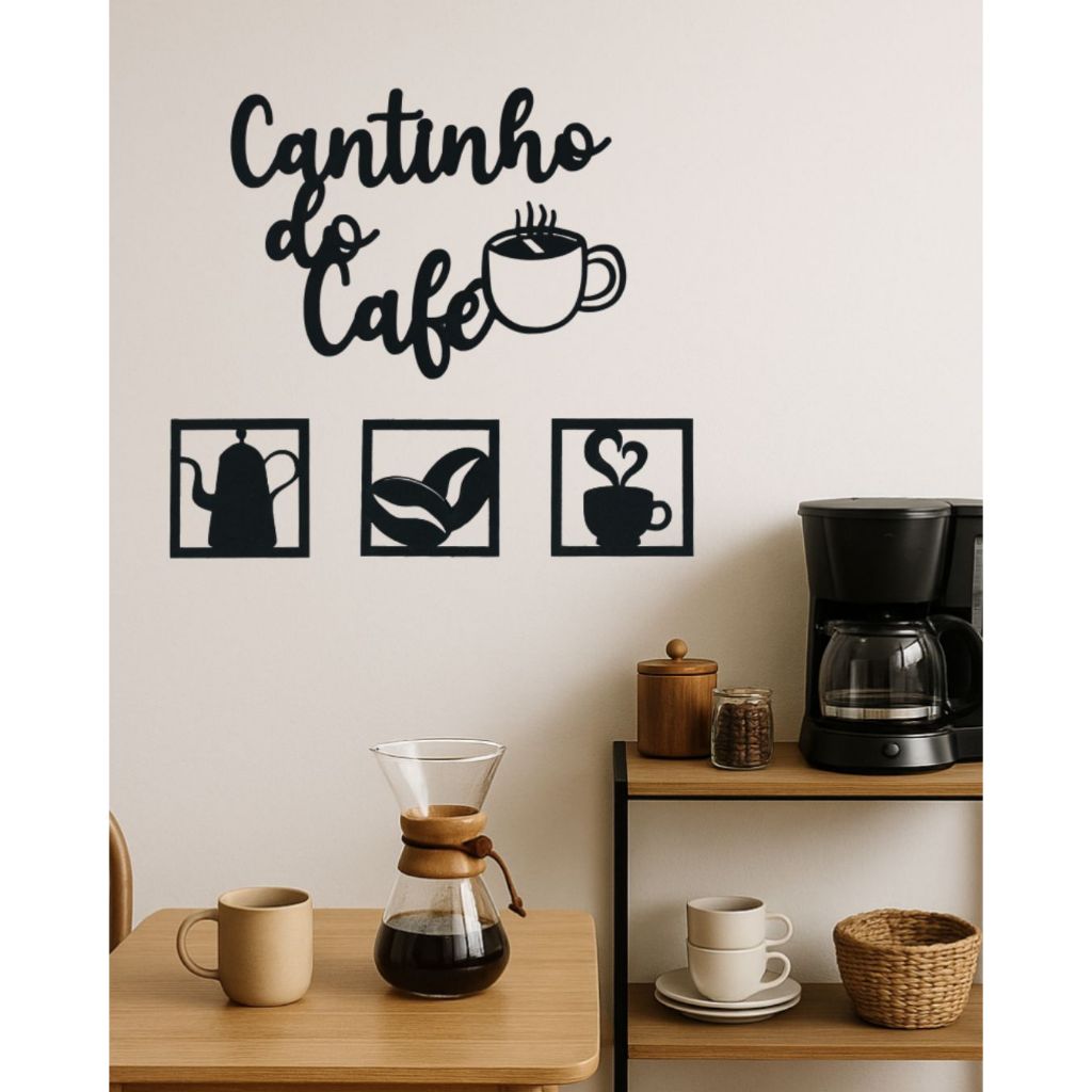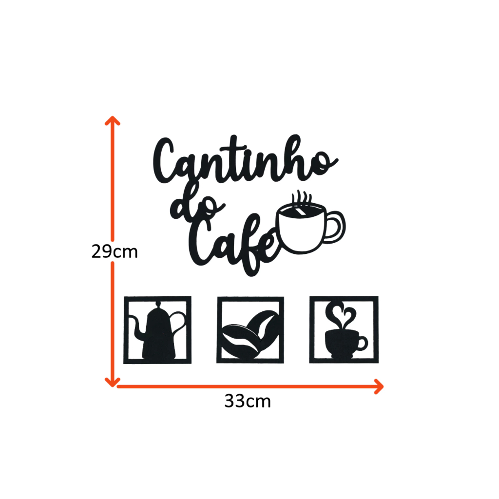 Kit 4 Peças Cantinho do Café Preto Fosco 30cm com Bandeja Decoração de Cozinha Mdf 3mm C/Dupla Face