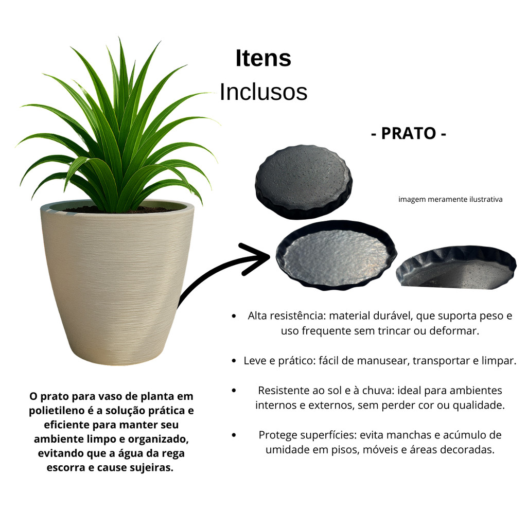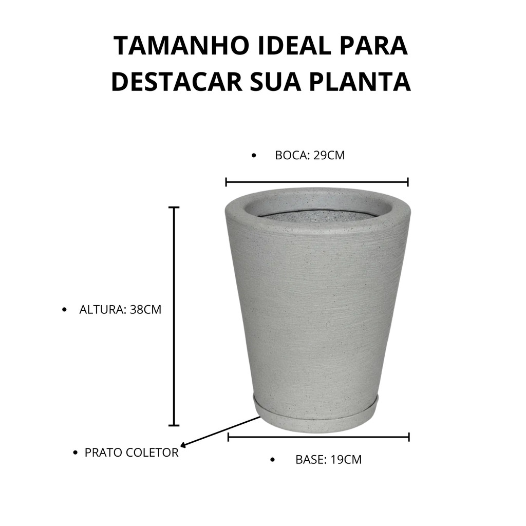 Vaso para Planta Decorativo Cone Redondo Escovado N°2 Luxo Moderno com Prato