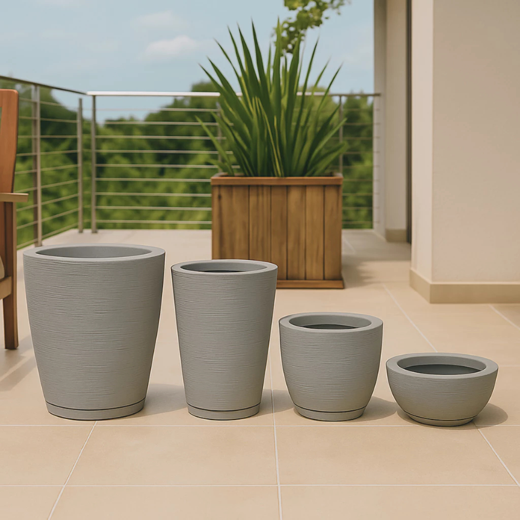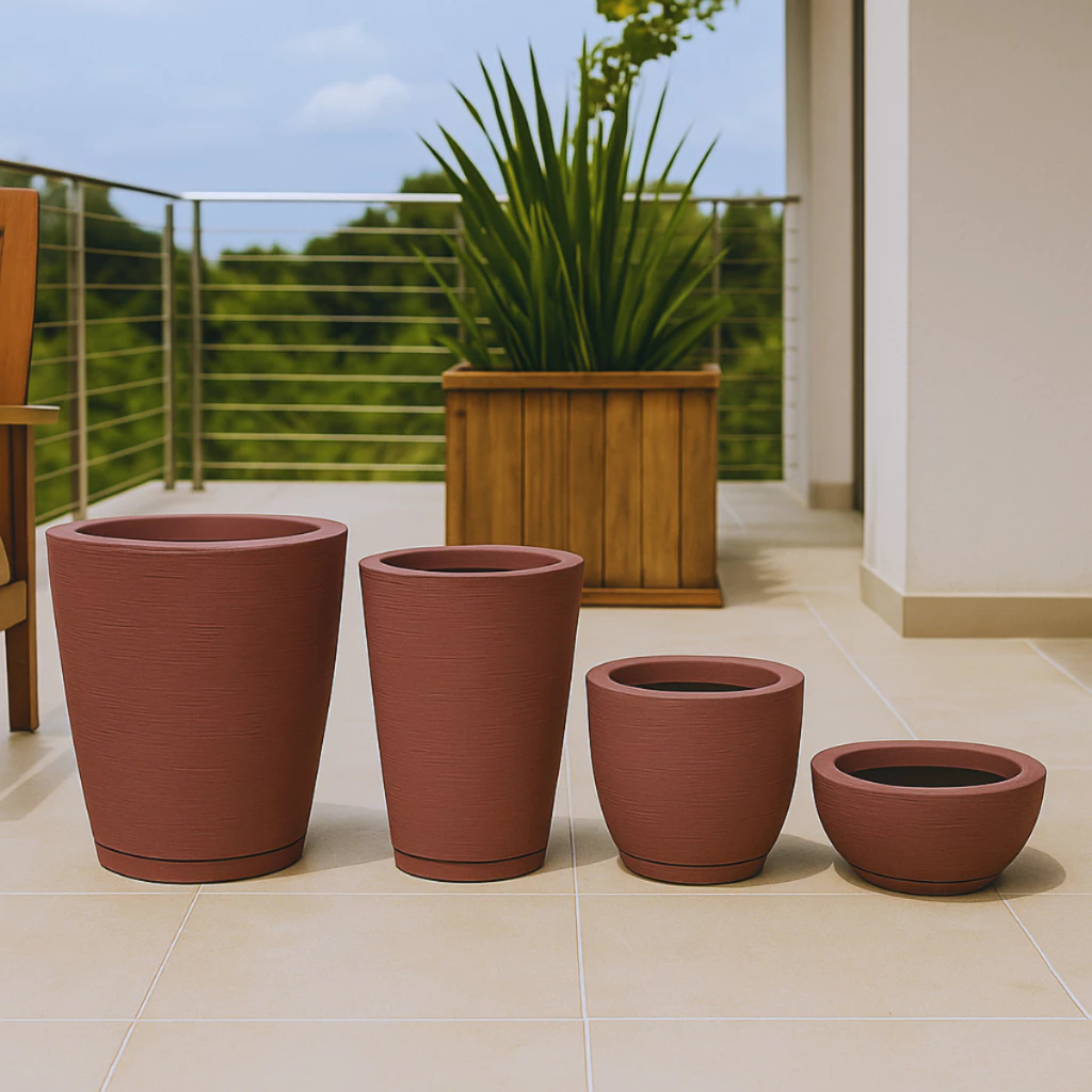 Kit 4 Vasos para Plantas Decorativo Escovados Coluna Redona 1 + Bojo 1 + Bacia 1 + Coluna Bojo 1