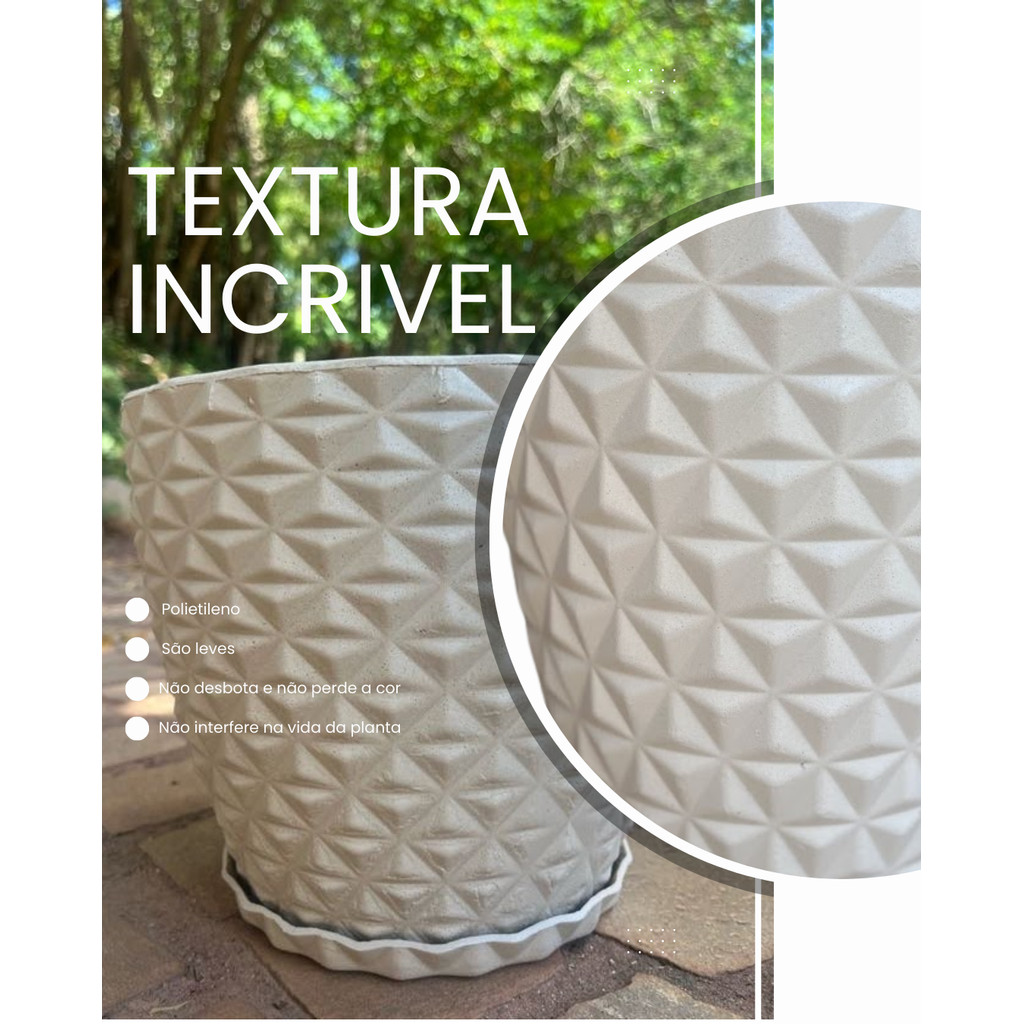 Vaso para planta decorativo em polietileno redondo estilo diamante PP COM PRATO