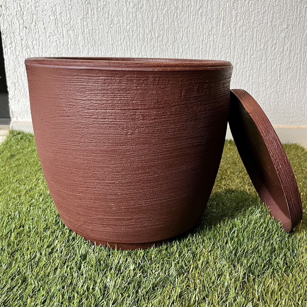 Vaso Decorativo Polietileno para Plantas Bojo Redondo Com Prato Medidas 30x35x26cm