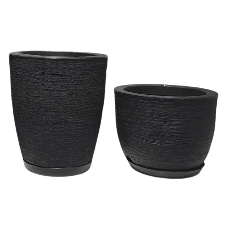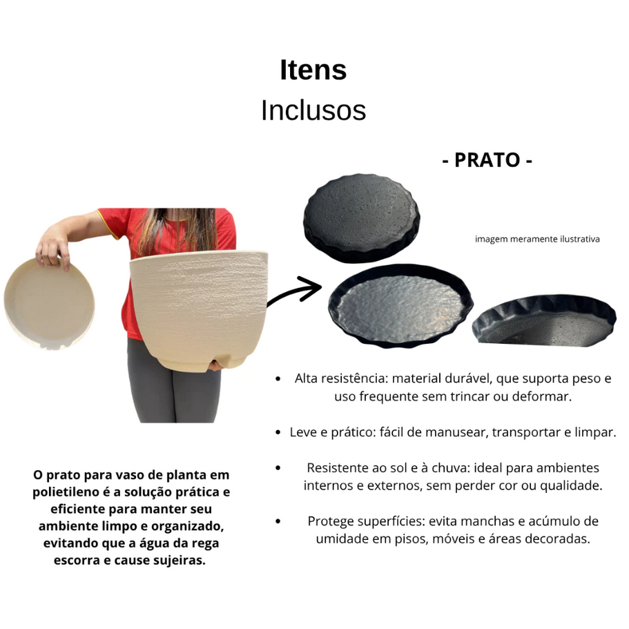 Kit 2 Vasos P/ Plantas Jardim Sala Luxo Coluna Bojo Escovado N1 e Bojo Pequeno Com Prato