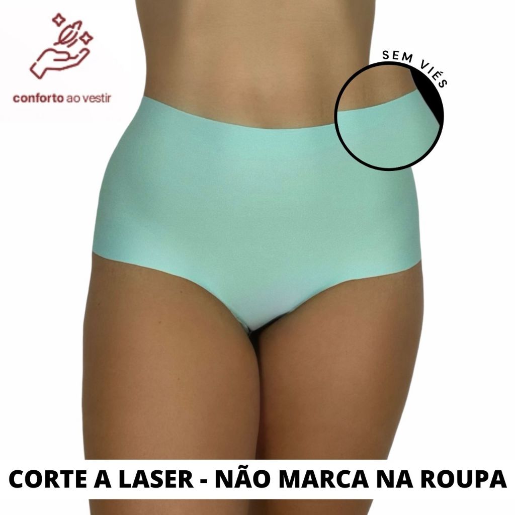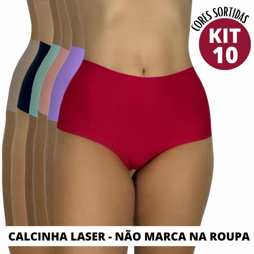 Kit 10 Calcinha Laser Sem Costura Box Conforto Lingerie Dia a Dia Feminina Cós Alto Revenda Promoção Bia
