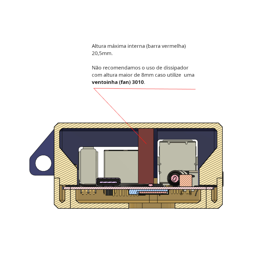 Case para Orange Pi 3 LTS com suporte de antena e suporte para fan 3010