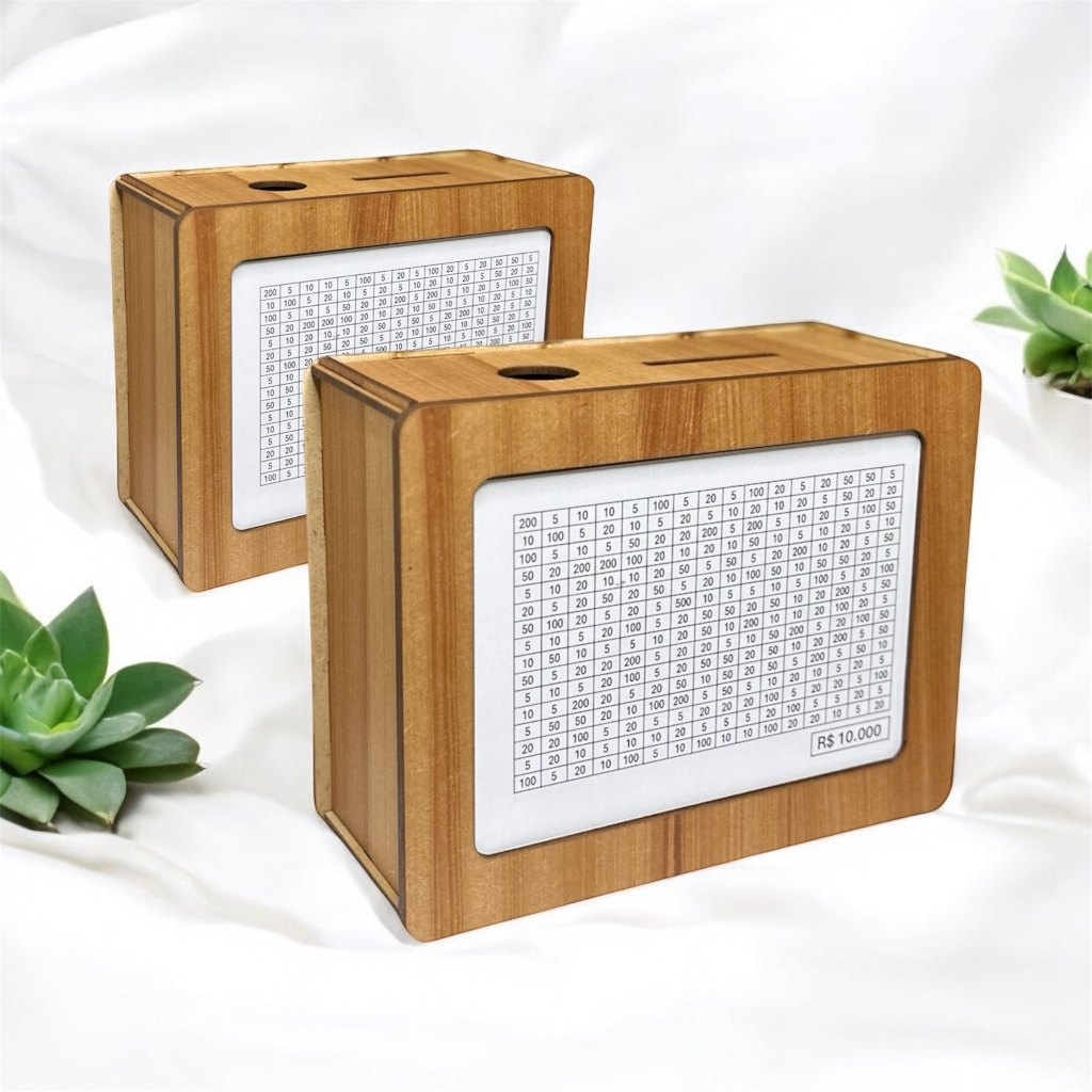 Kit 2 Cofres Woodbox Marrom em MDF Desafio de 1000 5000 e 10000 Metodo Japones