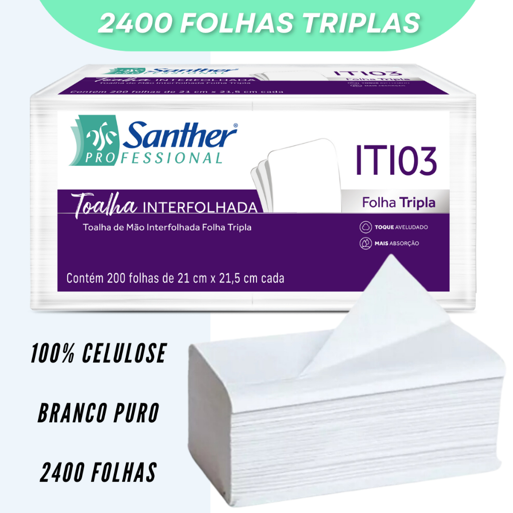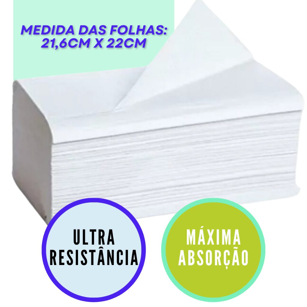 Papel Toalha Interfolha Tripla 22x21,4cm 12 pacotes c/200fl - Kit 2400 folhas resistente