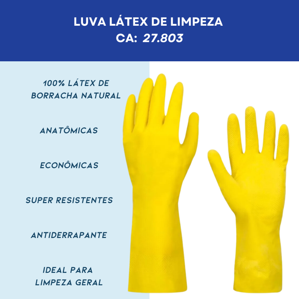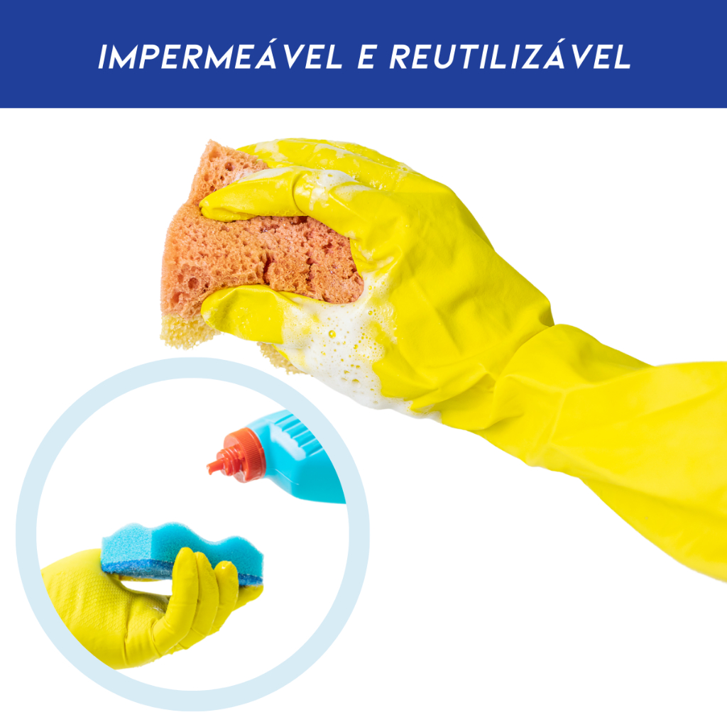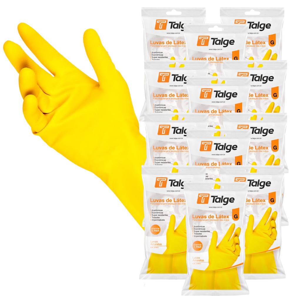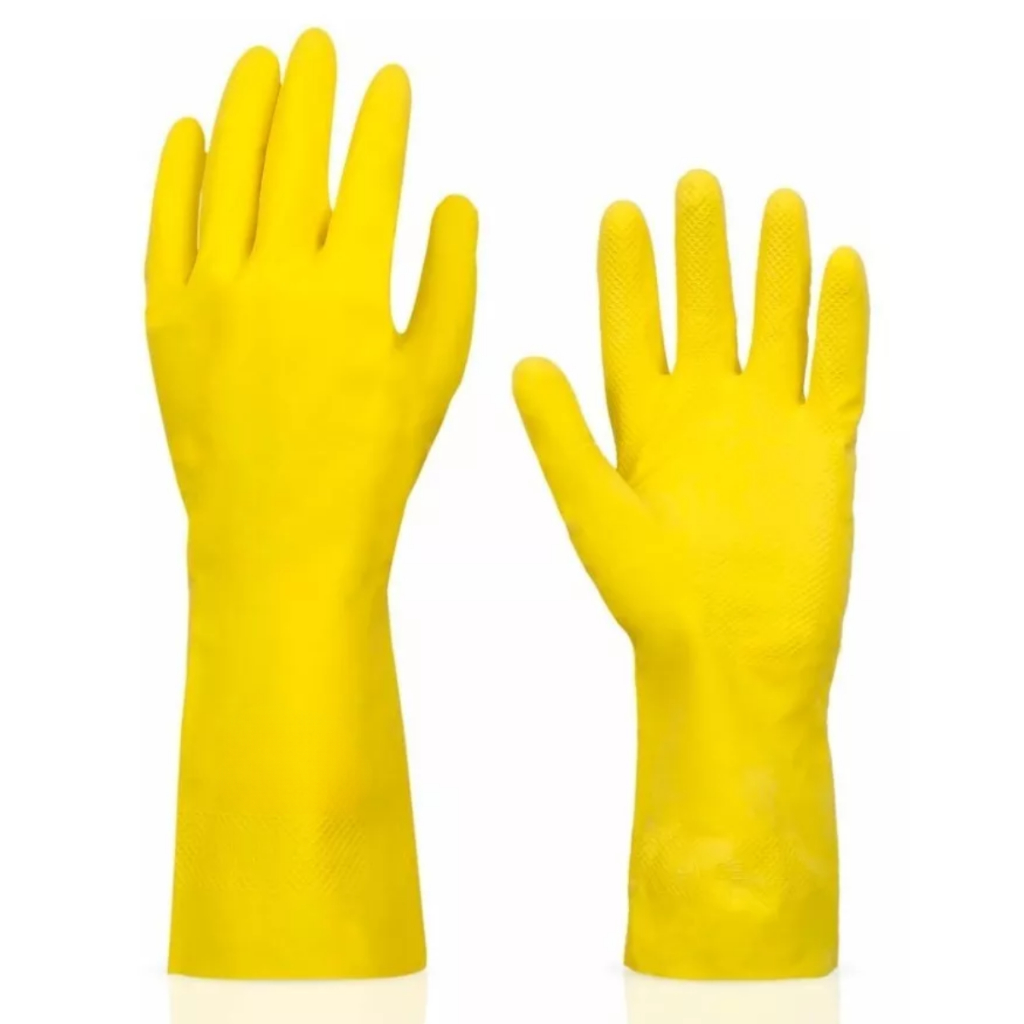 Luva Latex Limpeza Geral Resistente Multiuso Reutilizável Amarela 12 Pares
