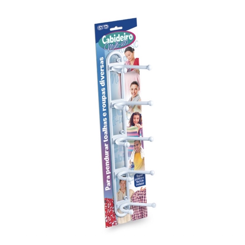 Cabideiro de Parede Preto ou Branco com 5 ganchos, cabide para toalha, roupas, multiuso, gancho de parede.