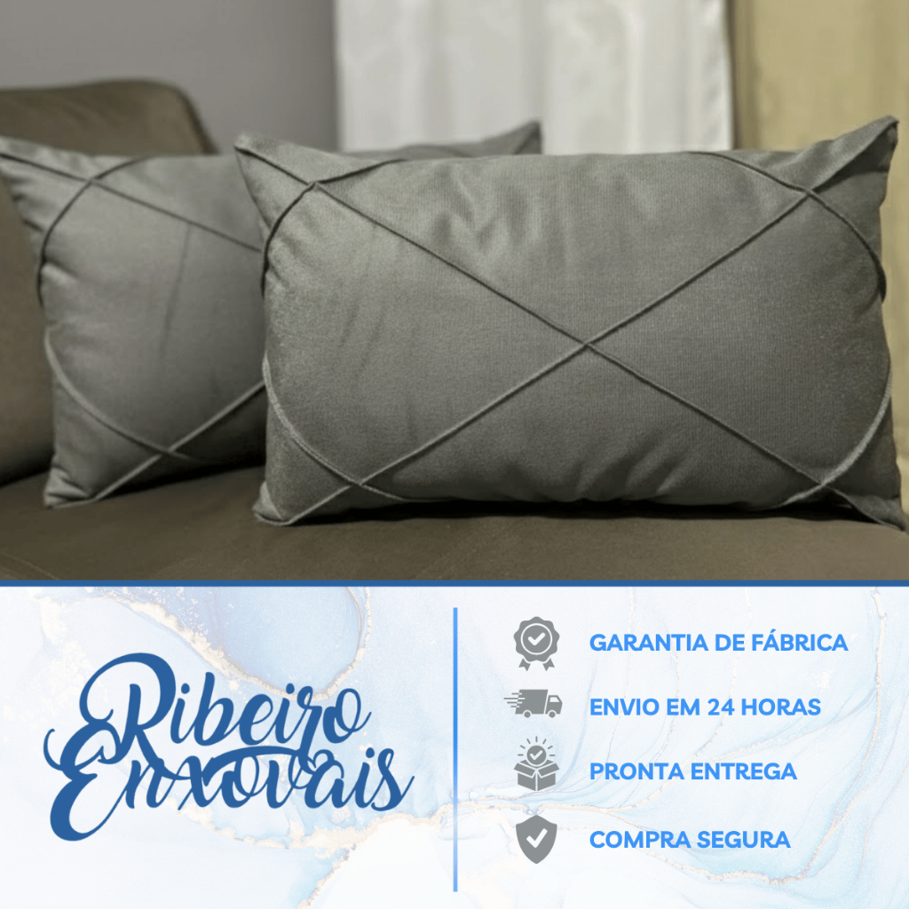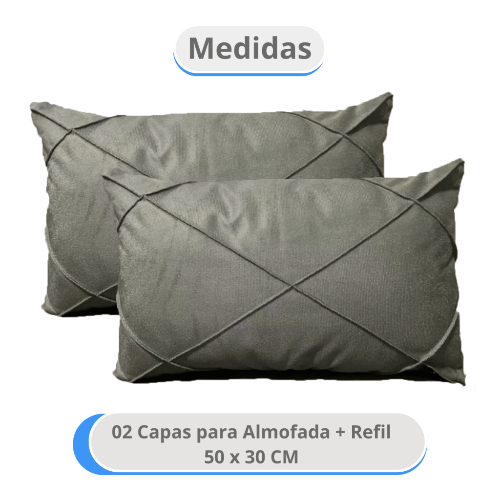 Kit 02/04 Almofadas Com Refil Baguete Retangular Suede Drapeada 30x50cm Decorativas Para Sofá e Cama