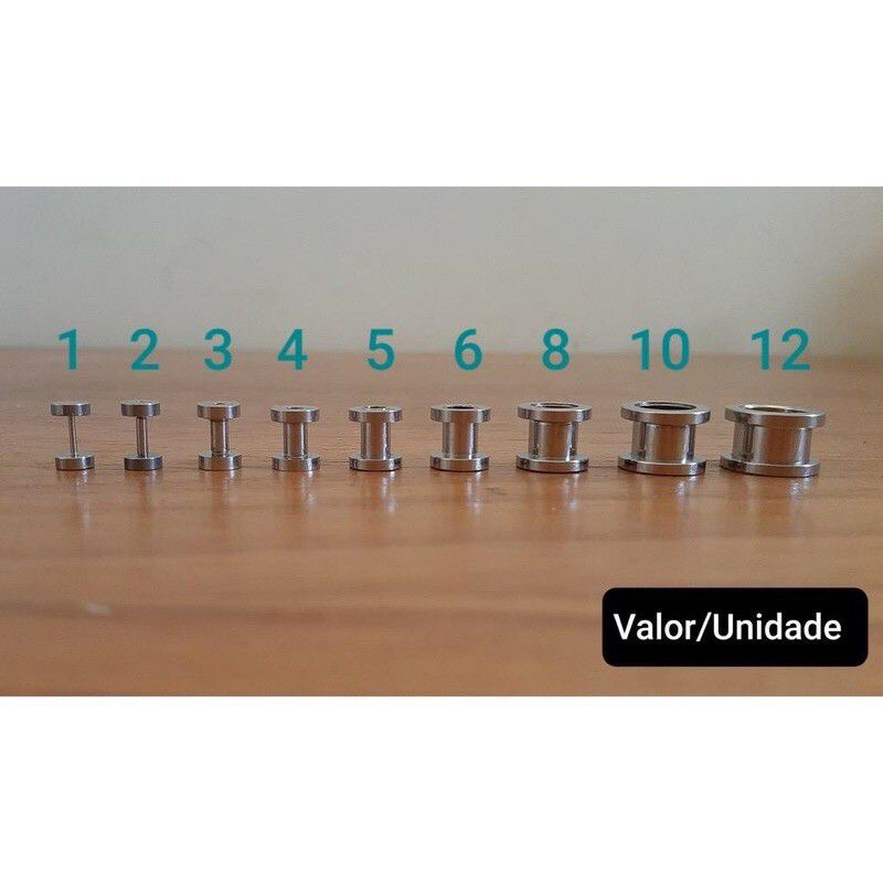 Alargador Aço Cirúrgico PRETO e PRATA 1mm/2mm/3mm/4mm/5mm/6mm/7mm/8mm/10mm/12mm/14mm/16mm