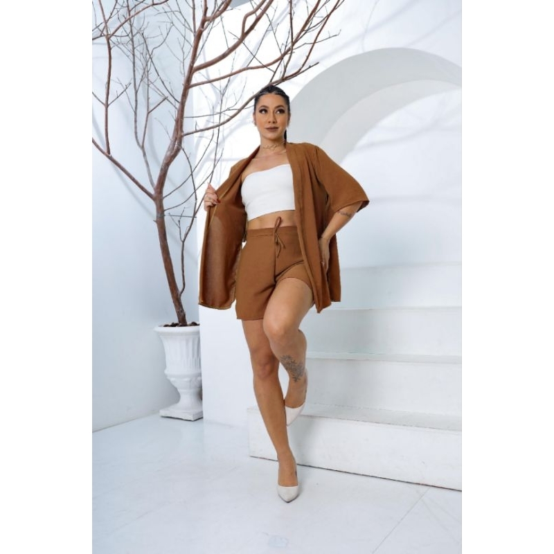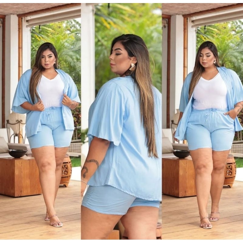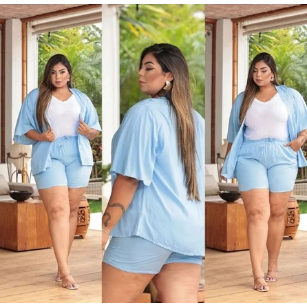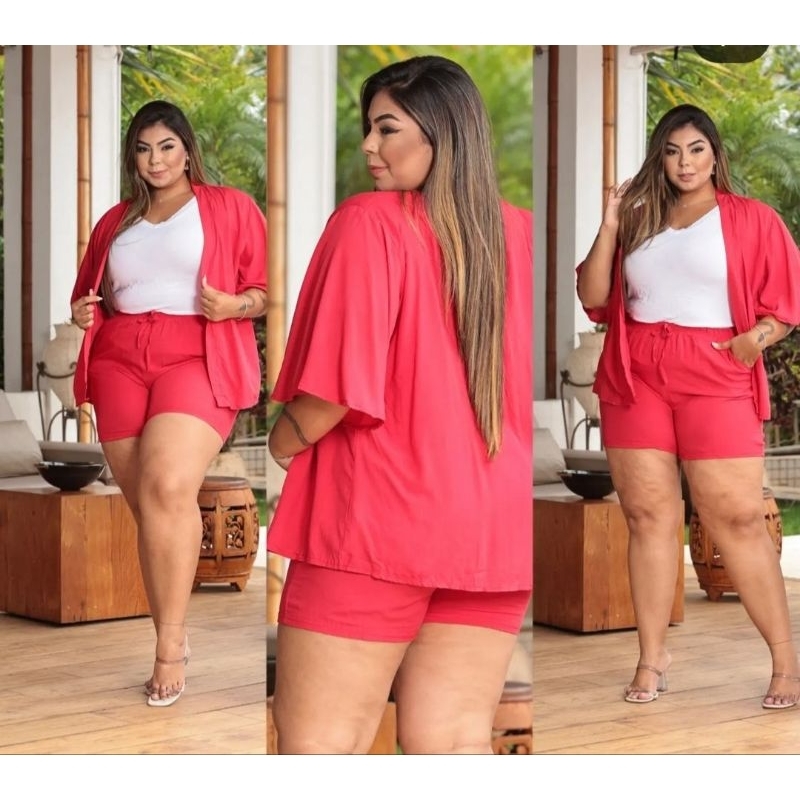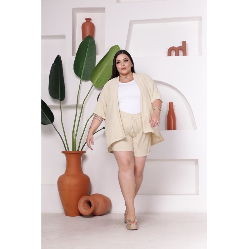 Conjunto feminino Plus Size kimono e short- G1 e G2