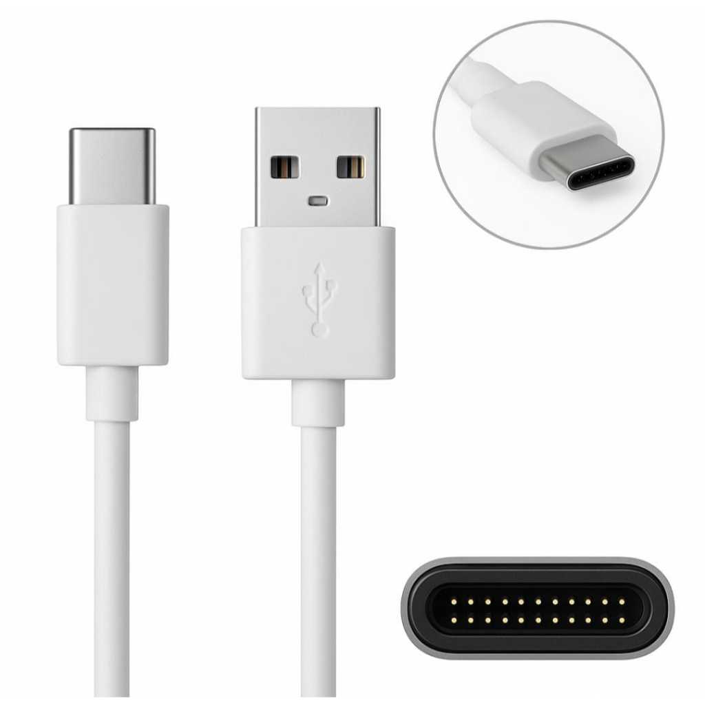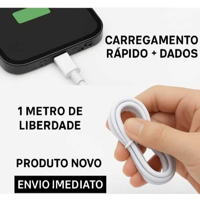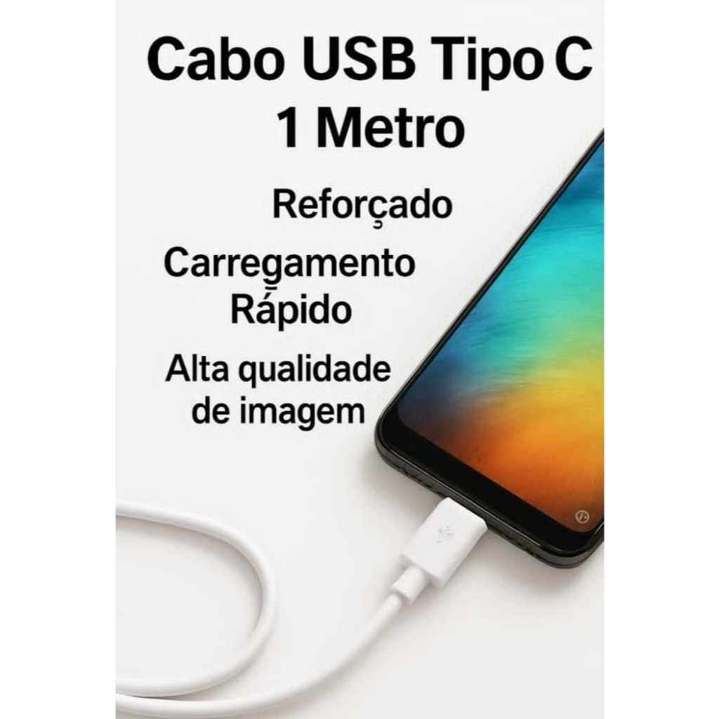 2 Cabos Tipo-C x USB Turbo 1 Metro Reforçado Rápido Android IOS Carregador Preto