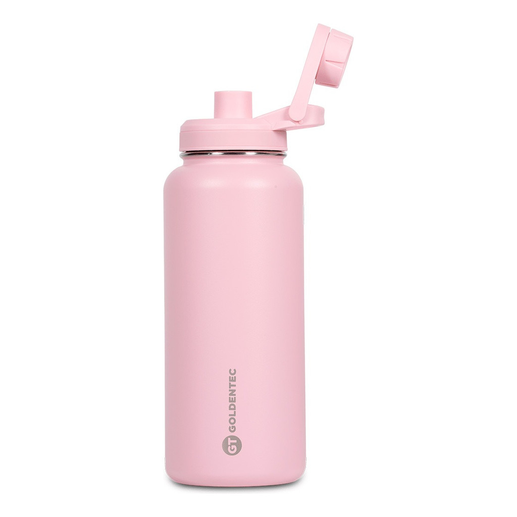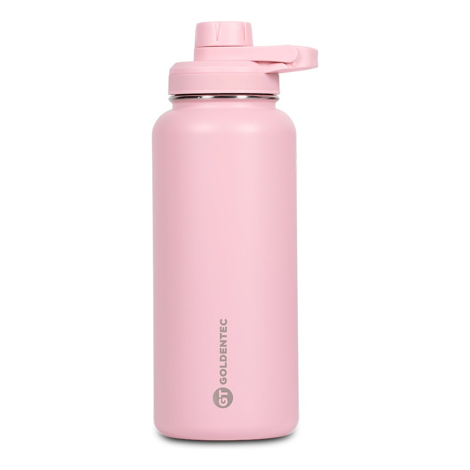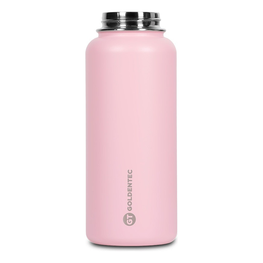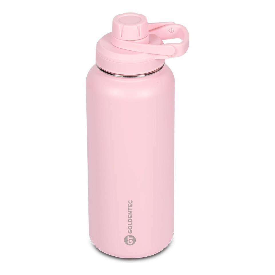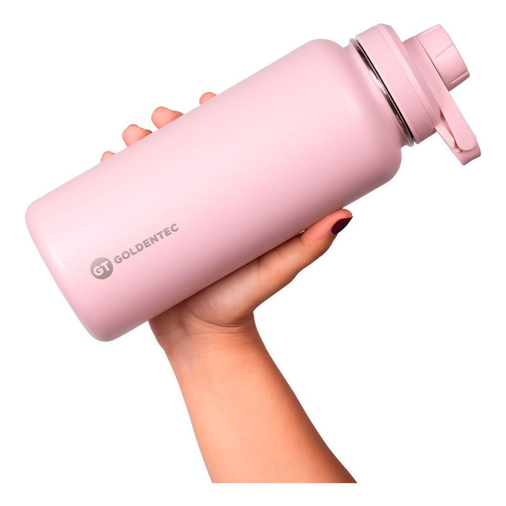 Garrafa Térmica Inox Goldentec 1000ml para bebidas quentes ou frias com tampa e bico - Rosa Claro