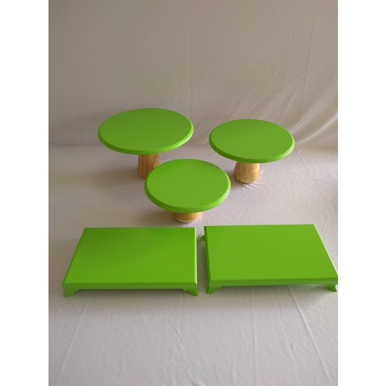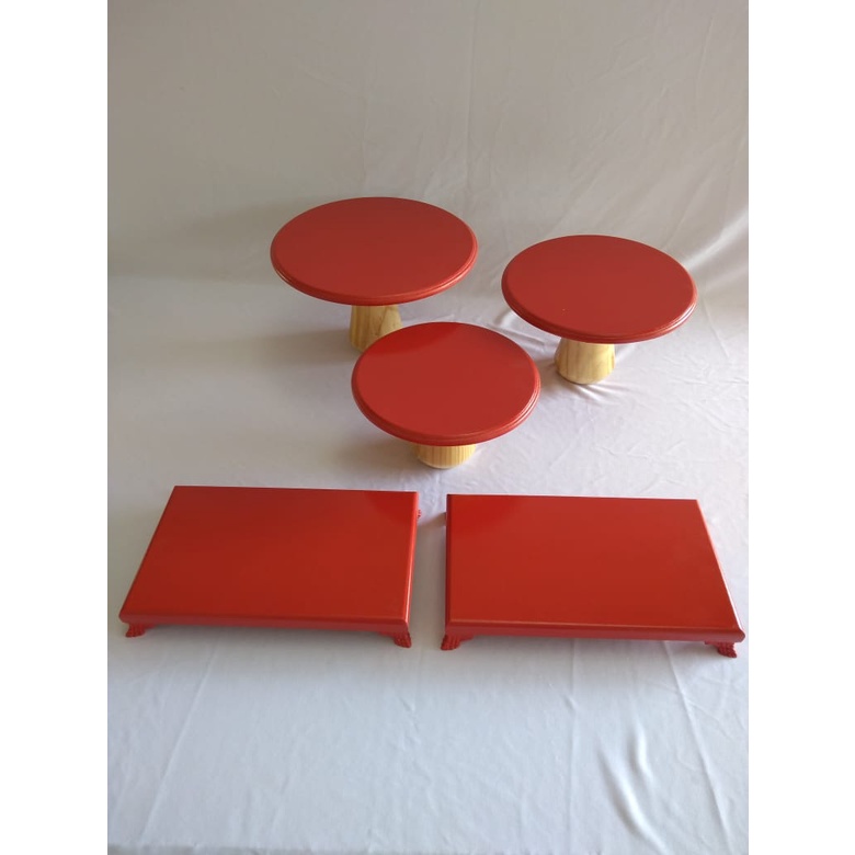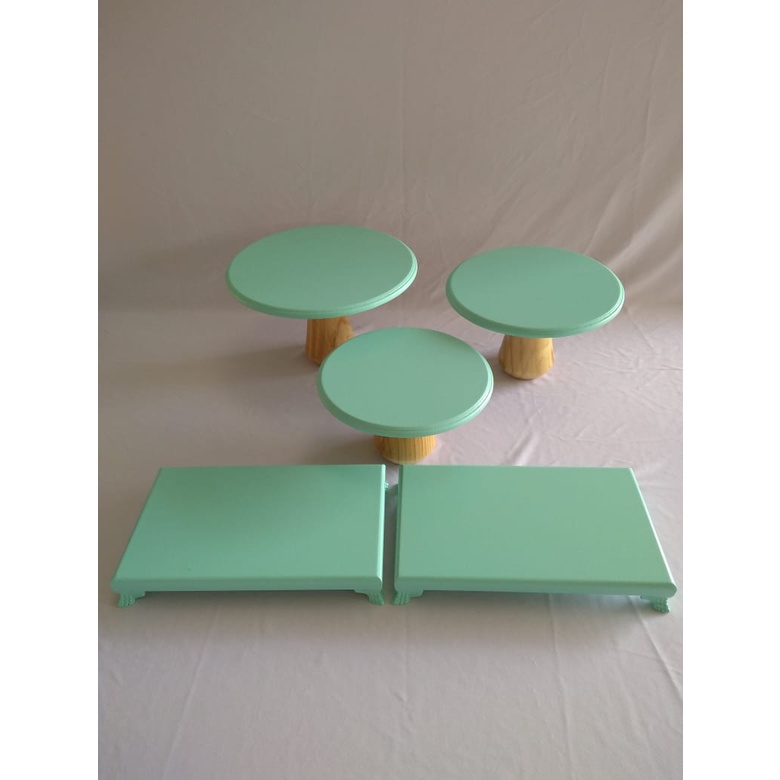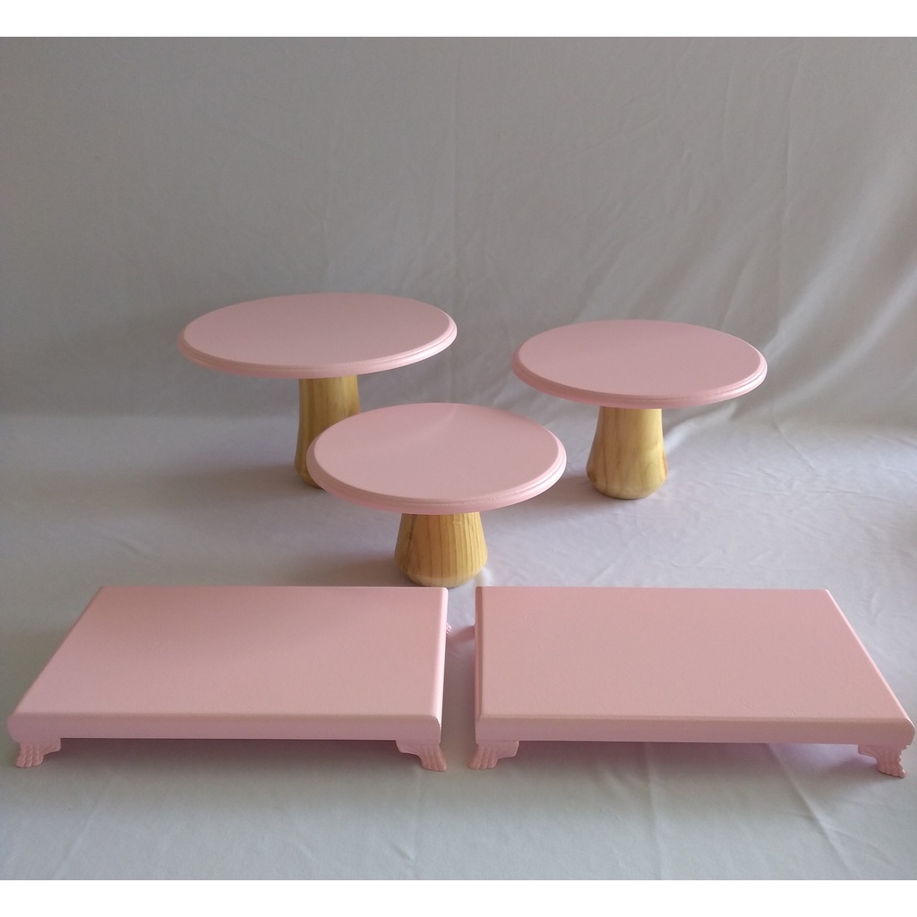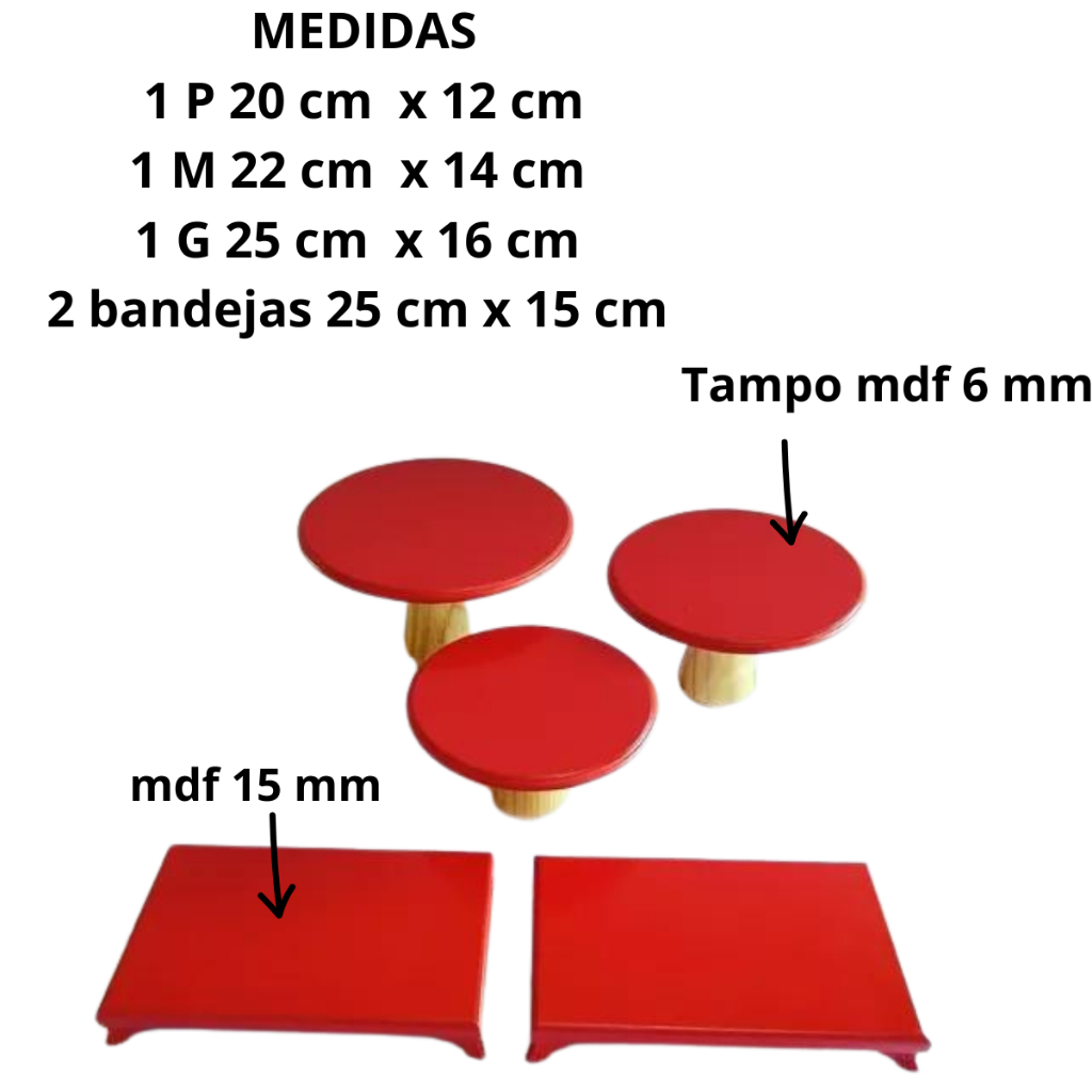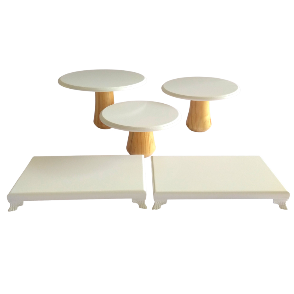Kit Trio Cogumelo Suporte Doce E 2 Bandejas Pé Resina