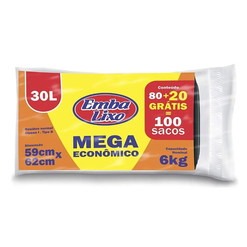Saco para Lixo 30l Embalixo 80 Unidades + Grátis 20 Unidades Mega Econômico