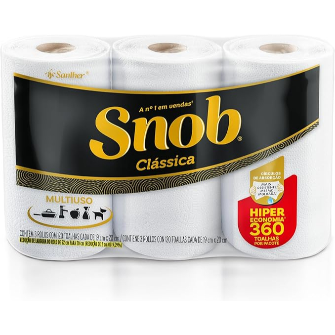 Kit 2x Papel Toalha Snob Folha Dupla Pacote Hiper 360 Folhas