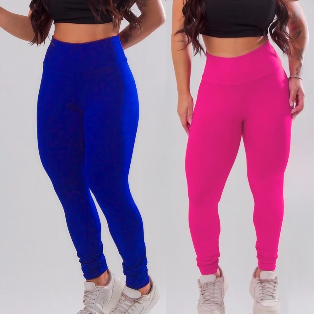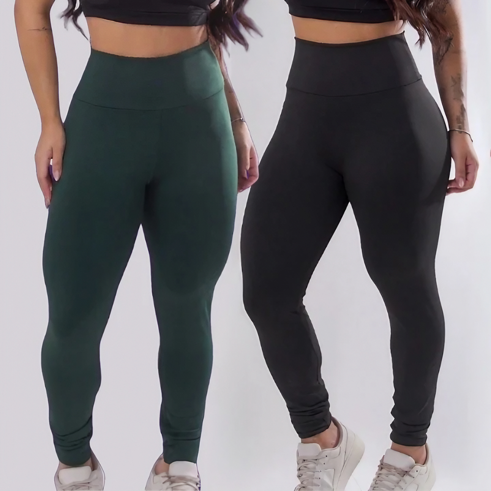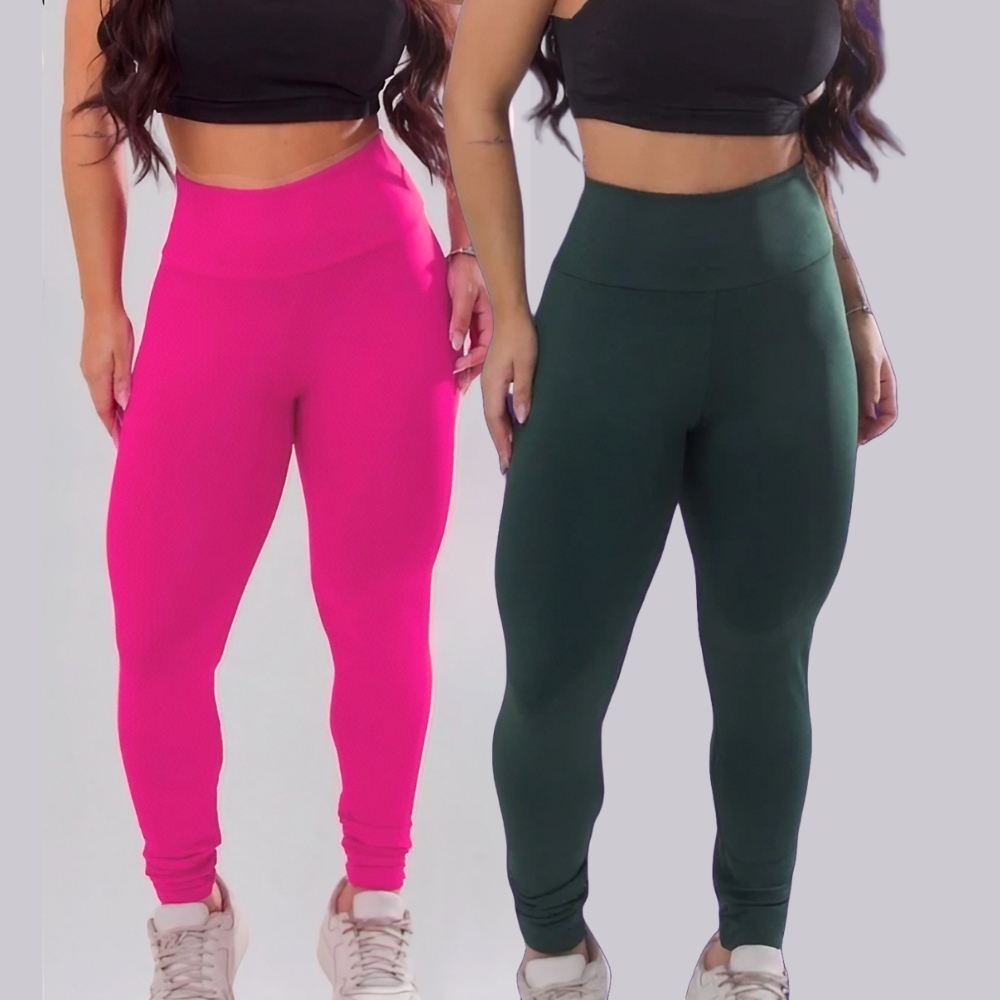 Kit 2 Calças Legging Academia Anti-Transparencia Feminina Fitnnes Suplex