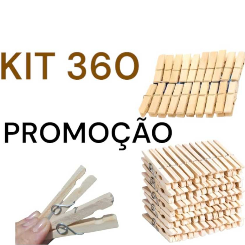 Kit 360 Prendedor Grampo De Roupas Madeira Embalagem com 120 a 360 Unidades
