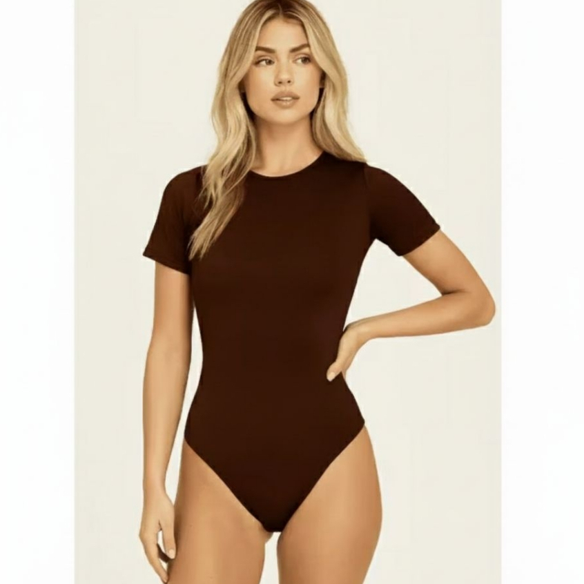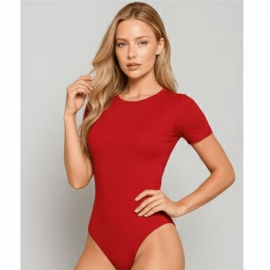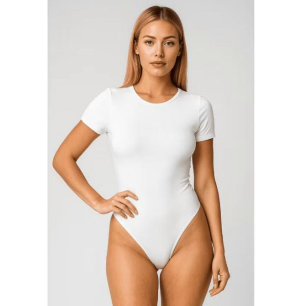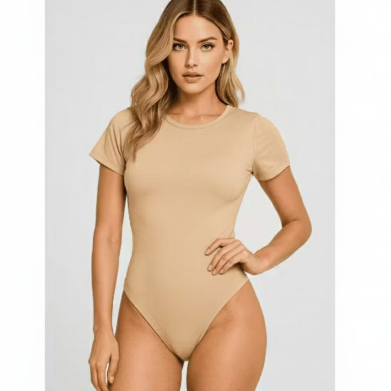 Body Feminino Forro Duplo Suplex Premium Manga Curta Gola Redonda Careca
