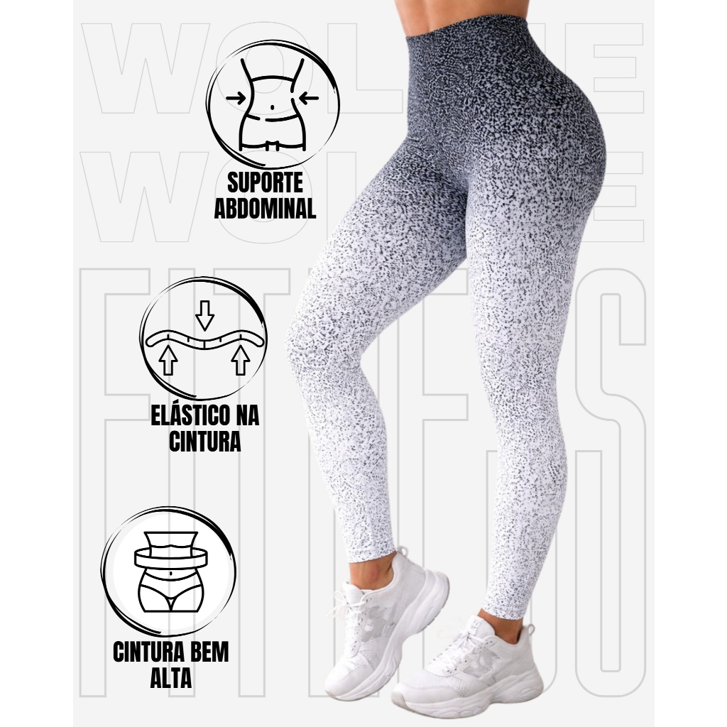 Calça Legging Básico Estampado Jacquard Degradê Em Poliamida WOLFOX Fitness Academia Feminina