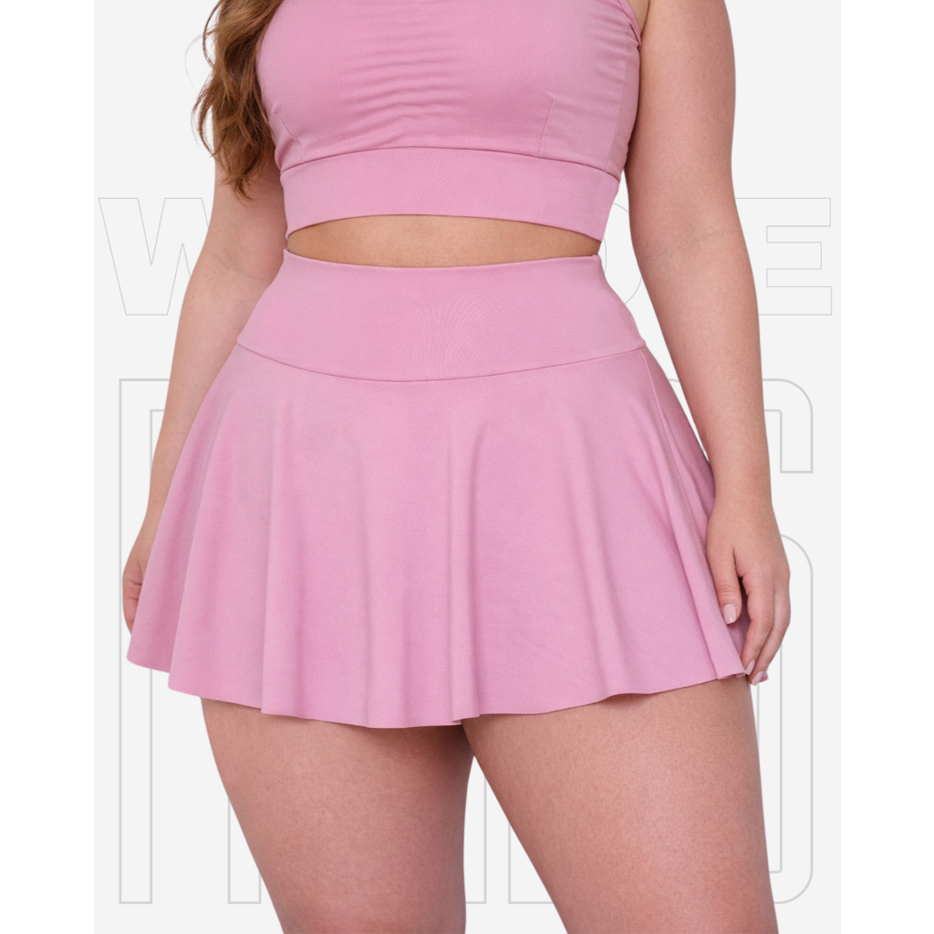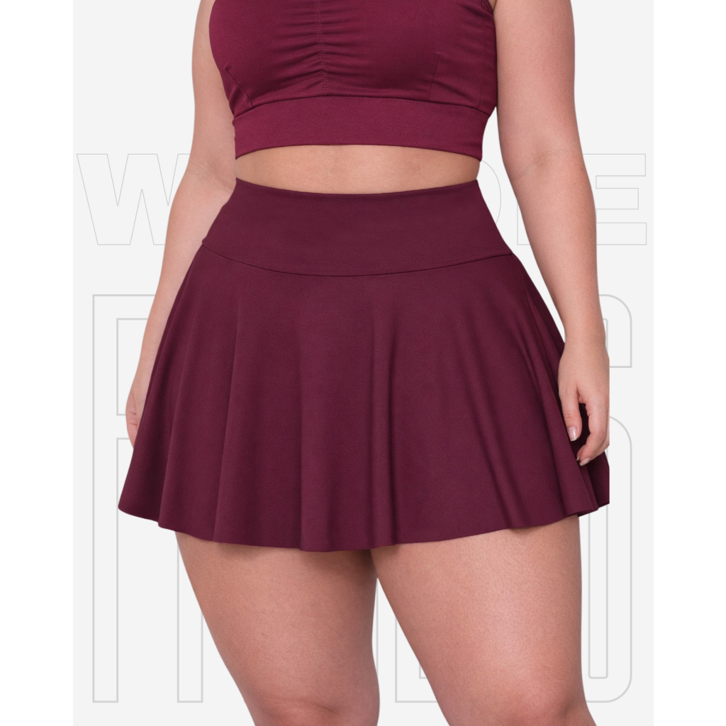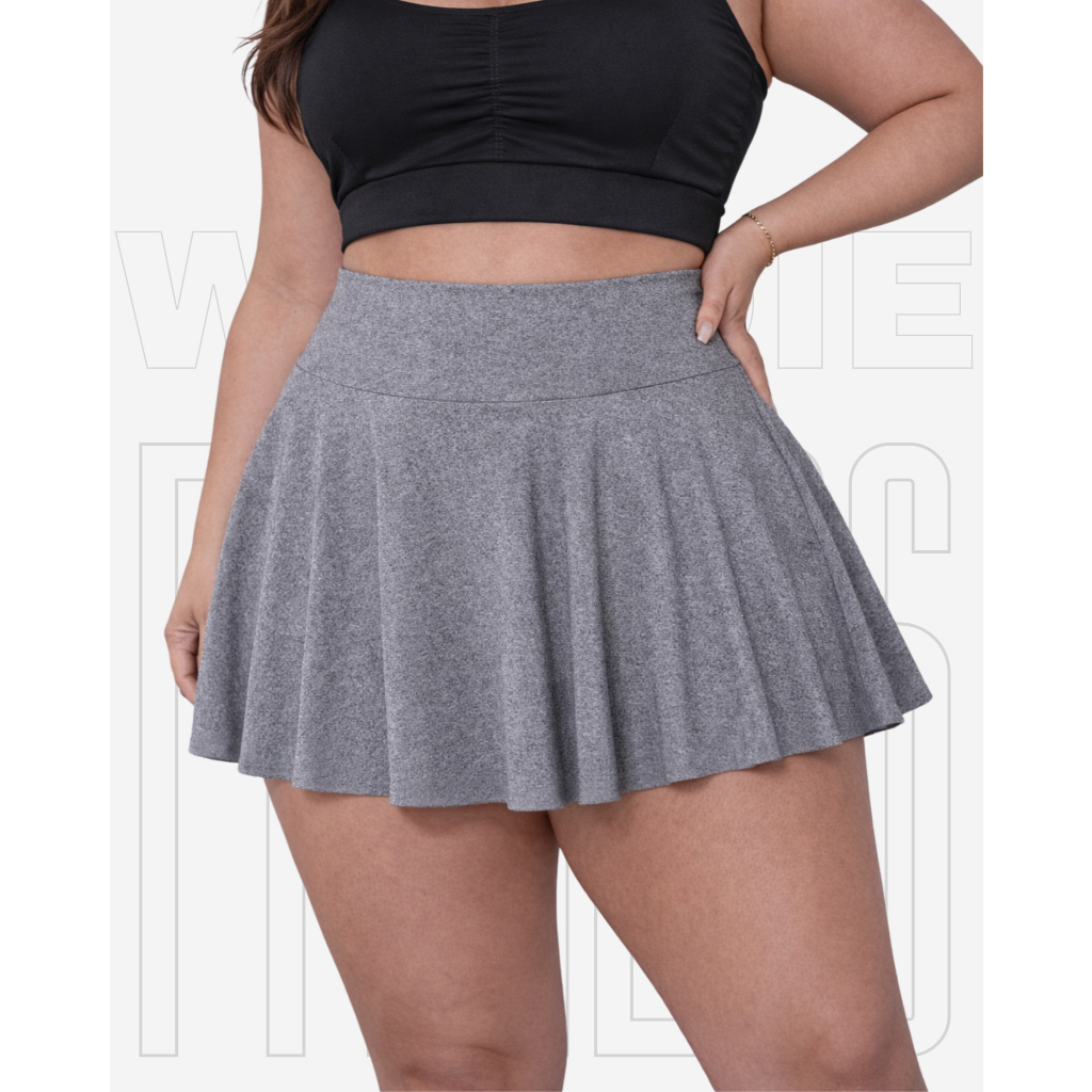 Short Saía Babado Plus Size Tapa BumBum Em Suplex Poliéster WOLFOX Fitness Academia Feminina