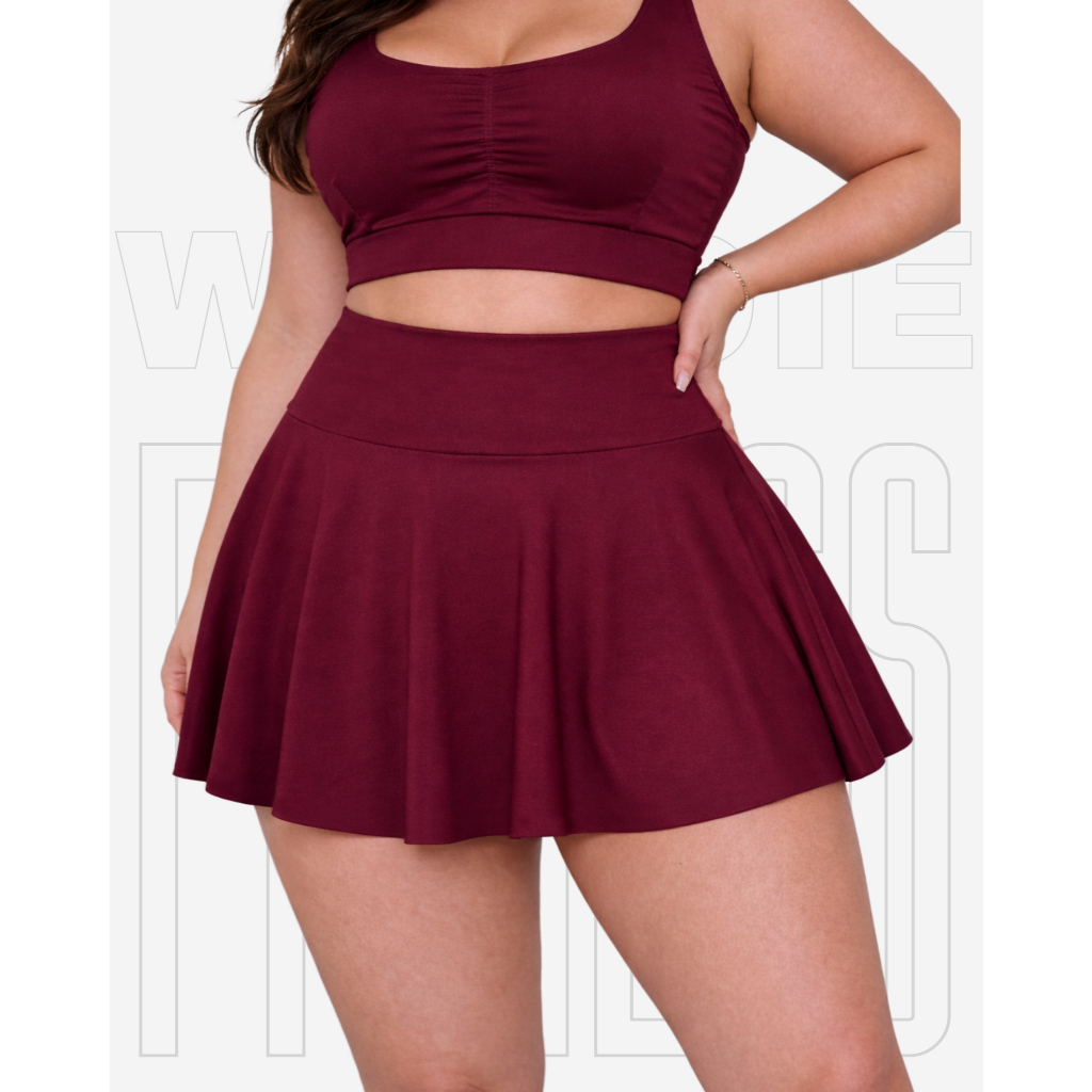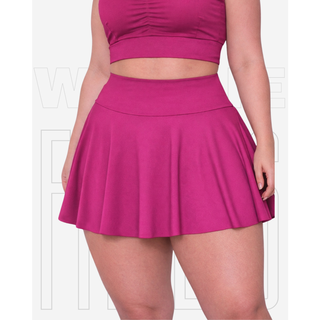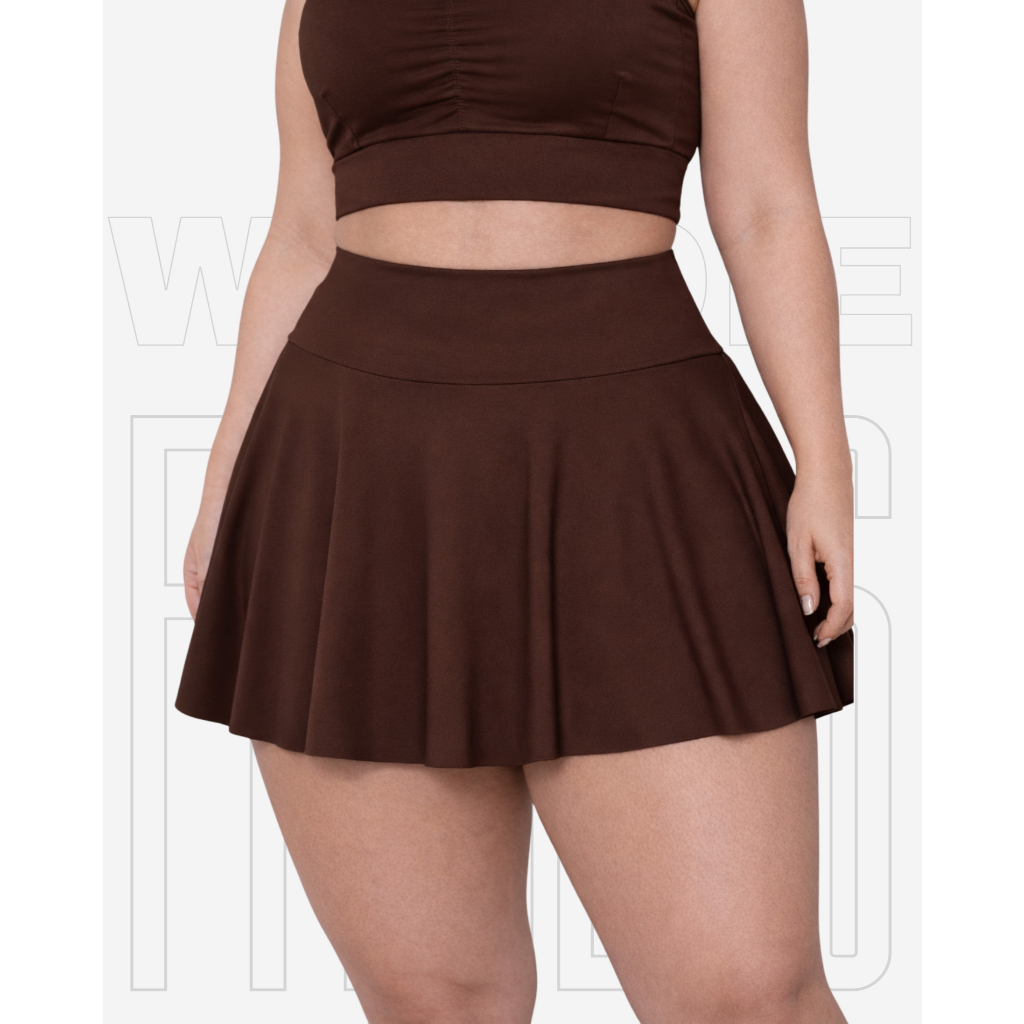 Short Saía Babado Plus Size Tapa BumBum Em Suplex Poliéster WOLFOX Fitness Academia Feminina