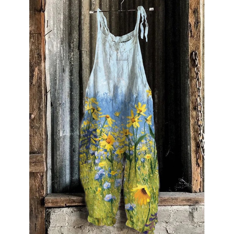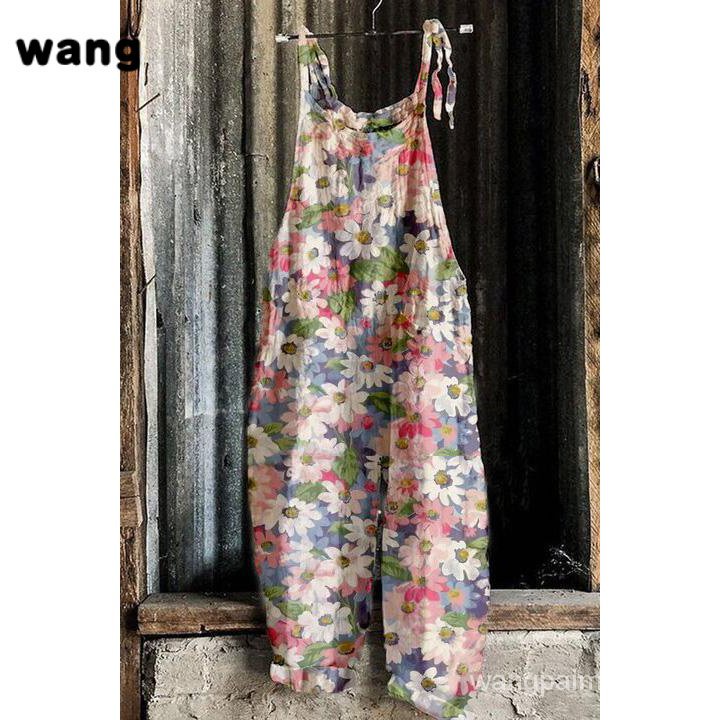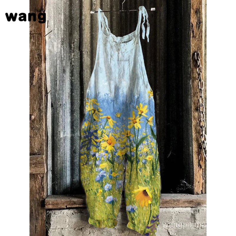 Macacão de perna larga estampado solto feminino