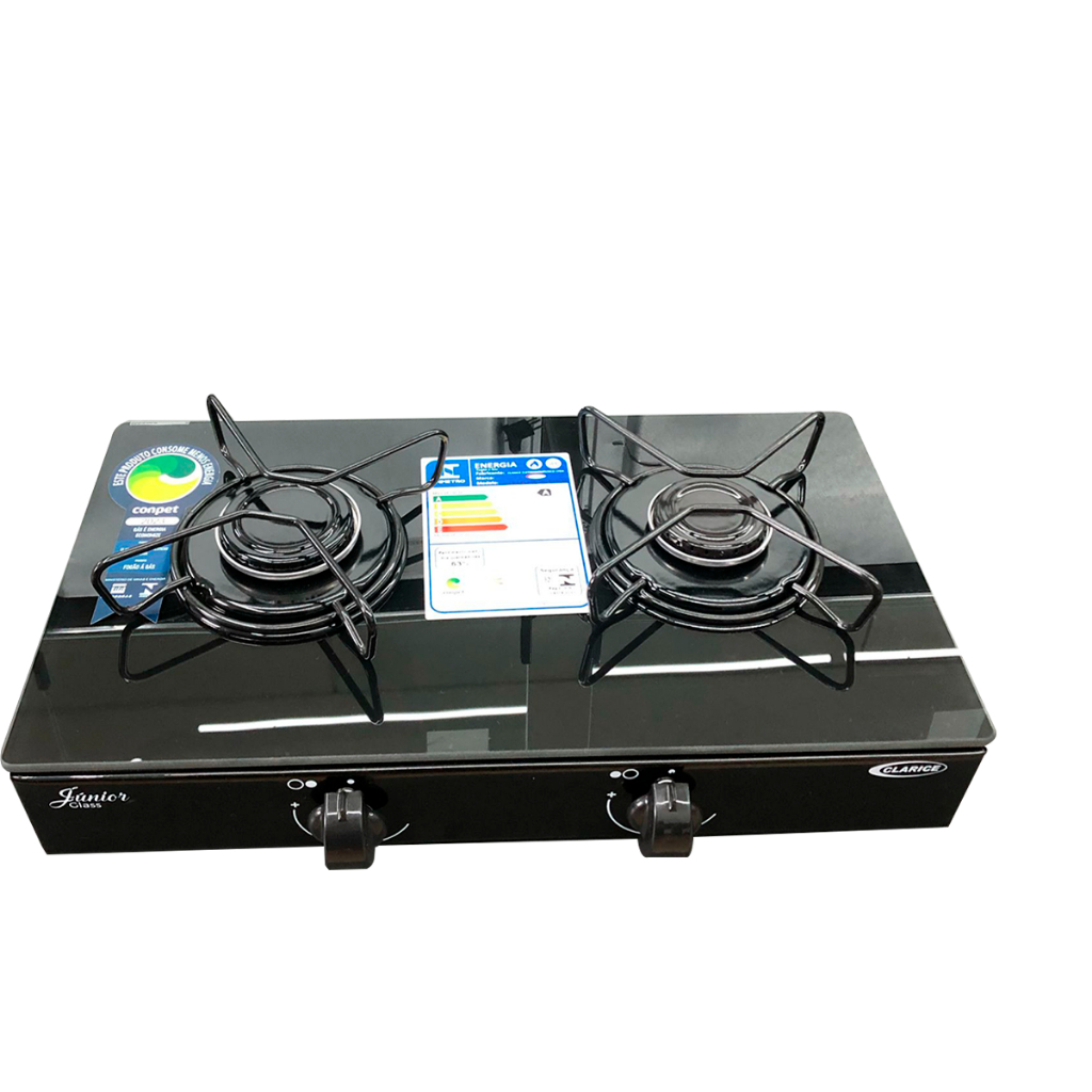 Fogão Cooktop de Mesa Portátil 2 Bocas A Gás Ultra Chama Vidro Temperado Clarice