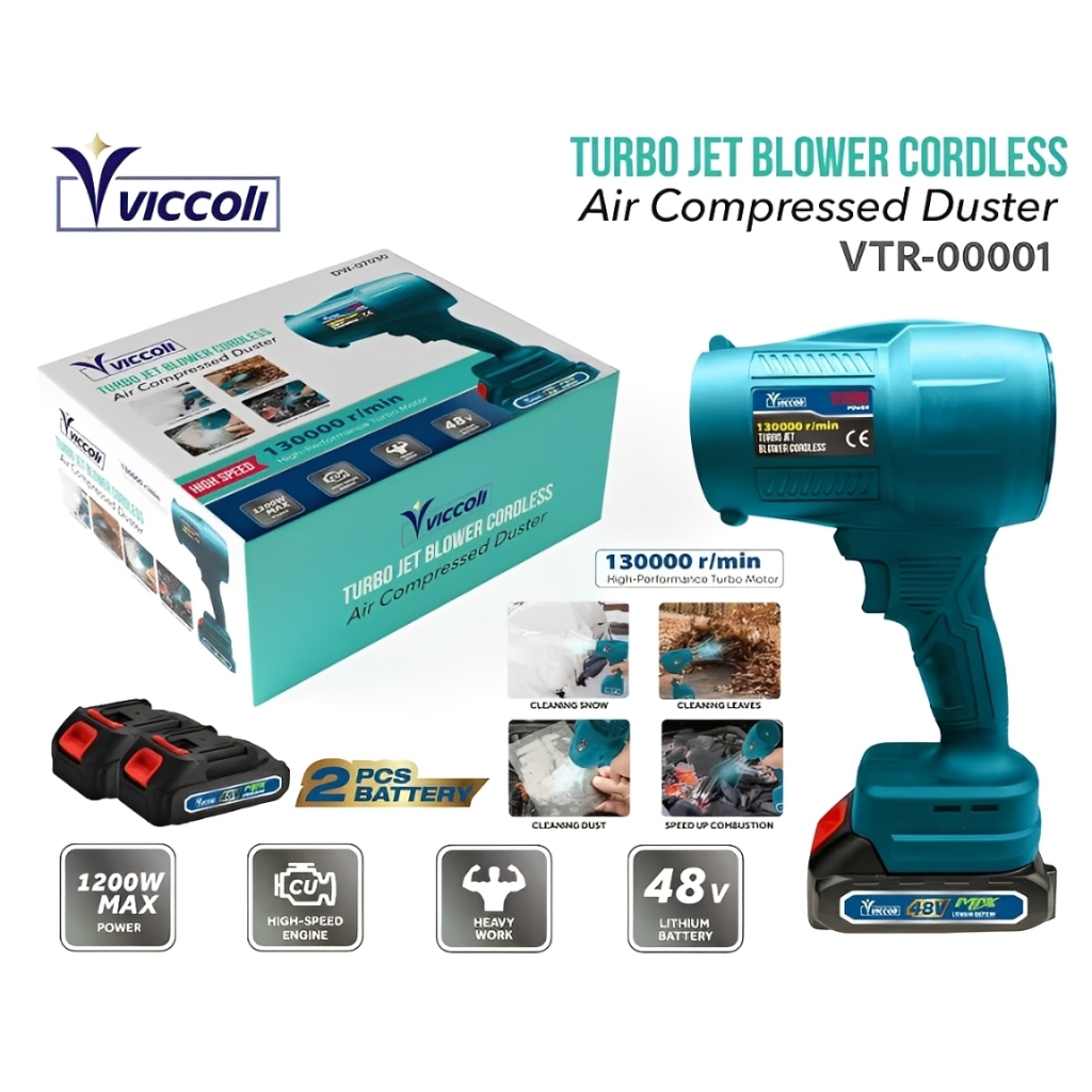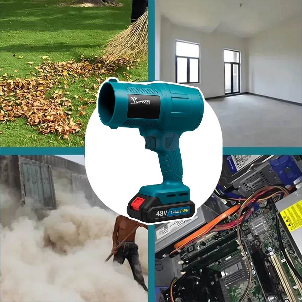 Soprador de Folhas Turbo Portátil 48V 2 Baterias 1200W Limpeza Automotiva