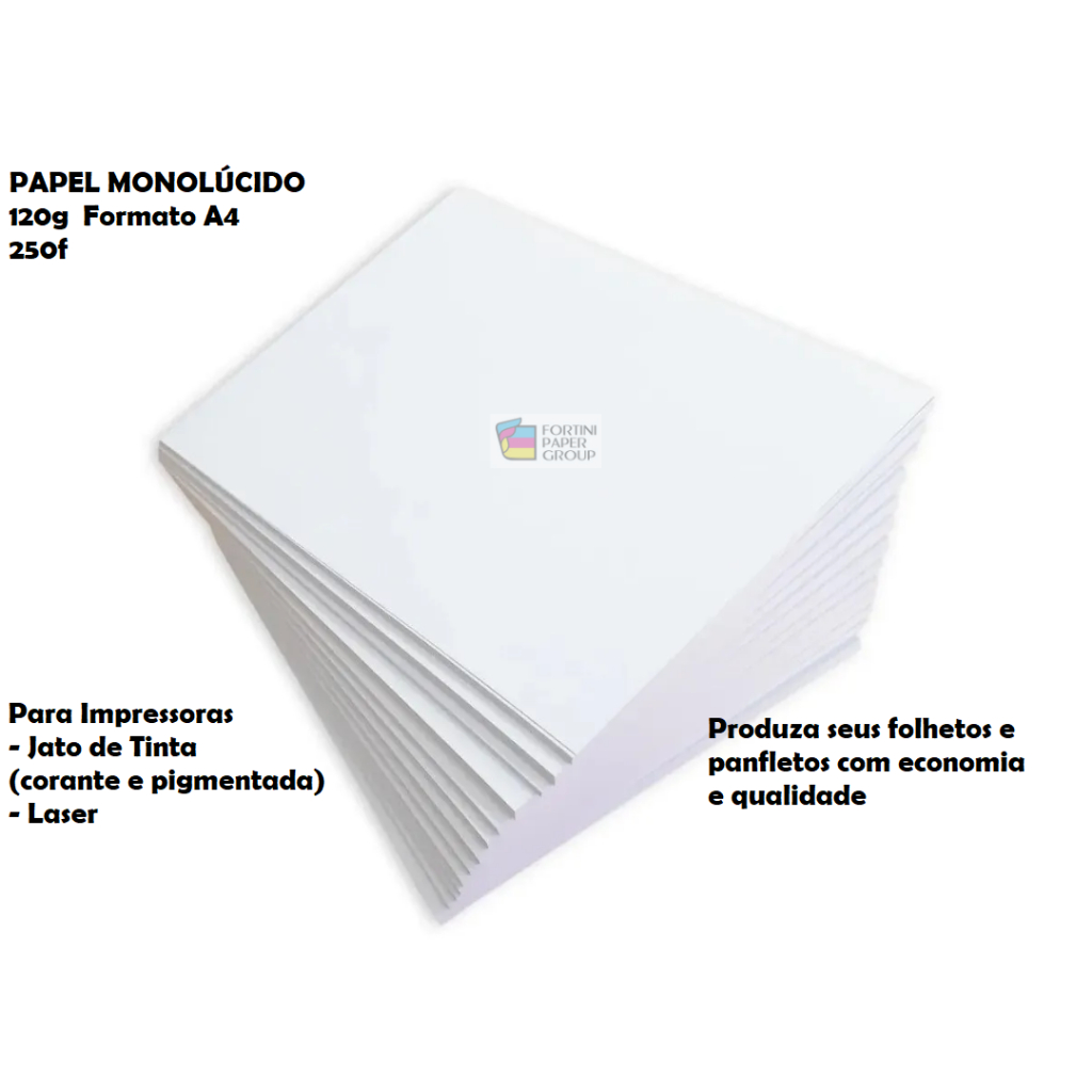 Papel Monolúcido Branco 120g A4 Pacote Com 250 Folhas 1 Face Brilho Folhetos Panfletos