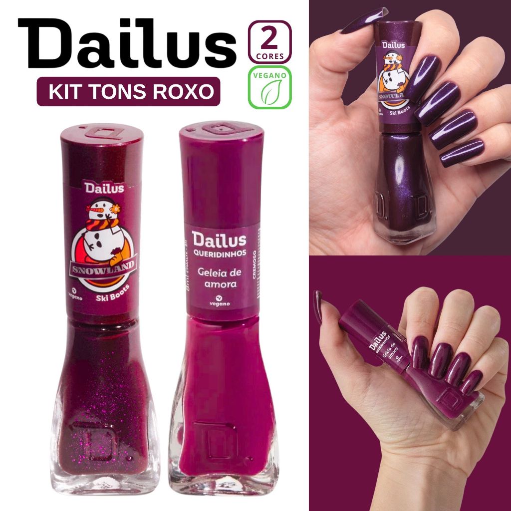 Kit 3 Esmaltes Dailus Tons de Roxo Gliter Cremoso Snowland Queridinhos